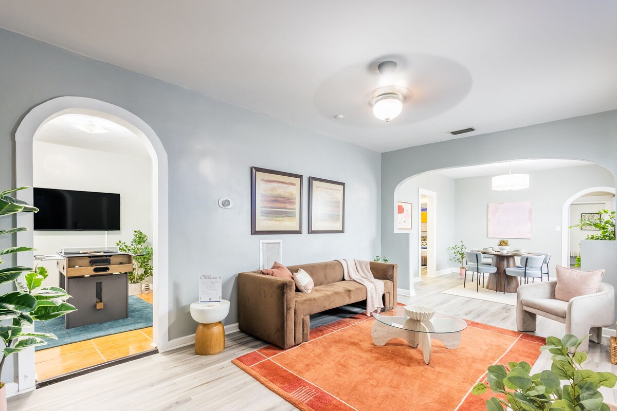 Welcome to your perfect West Palm Beach escape! *10 min from Downtown, Airport & Palm Beach Island *Comfortably sleeps 7 (King, Queen, Twins (2), Pull-Out Bed) *Turfed Backyard w/Hot-Tub, Mini-Golf, Firepit, Grill, Tiki Bar, Cornhole, Bocce *Arcade w/Pacman, Galaga, Golden Tee, Nintendo Switch, Board Games *Freshly remodeled interior (3BD/2BA) *Fully Loaded Kitchen w/Coffee Bar *Beach & Pickleball Gear (Chairs, Towels, Umbrella, Cooler, Spike Ball) *Blocks from тАЬThe ParkтАЭ golf course