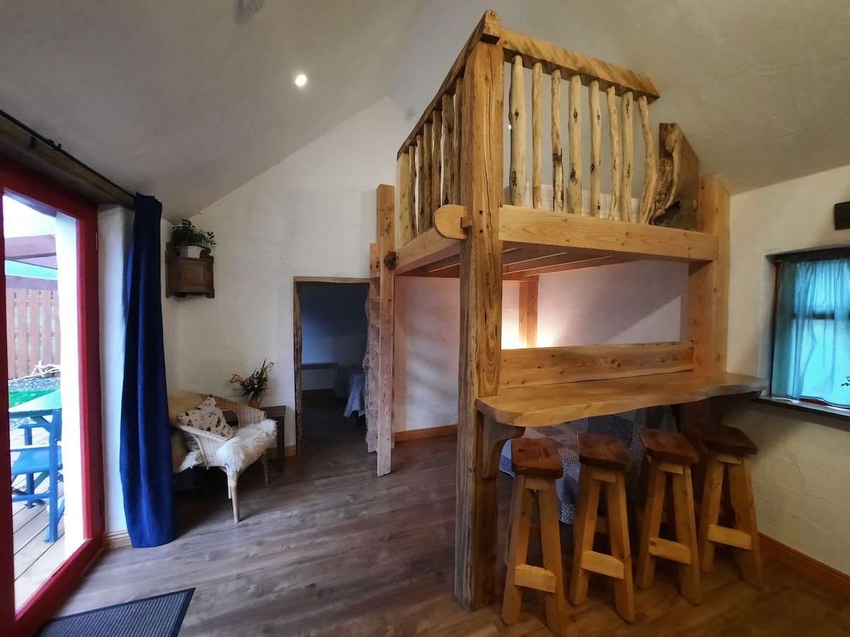 जेव्हा तुम्ही ताऱ्यांच्या खाली राहता तेव्हा या सर्व गोष्टींपासून दूर जा. सोलो, जोडपे किंवा कुटुंबासाठी सर्वात योग्य (1 प्रौढ, 2 मुले किंवा 2 प्रौढ, 2 मुले). ही प्रॉपर्टी एका लहान लेनवर, चित्तवेधक सभोवतालच्या आणि गडद आकाशाच्या उत्साही लोकांसाठी परिपूर्ण असलेल्या शांत ग्रामीण वातावरणात आहे. काउंटी मेयो आणि गॅलवेच्या सीमेजवळ 100 पेक्षा जास्त वर्षांपूर्वी बांधलेले आमचे अनोखे जुने रूपांतरित गेस्ट कॉटेज तुमच्यासोबत शेअर करताना आम्हाला खूप अभिमान वाटतो. कनॉटच्या वाईल्ड अटलांटिक मार्गाच्या मार्गांचे एक उत्तम प्रवेशद्वार.