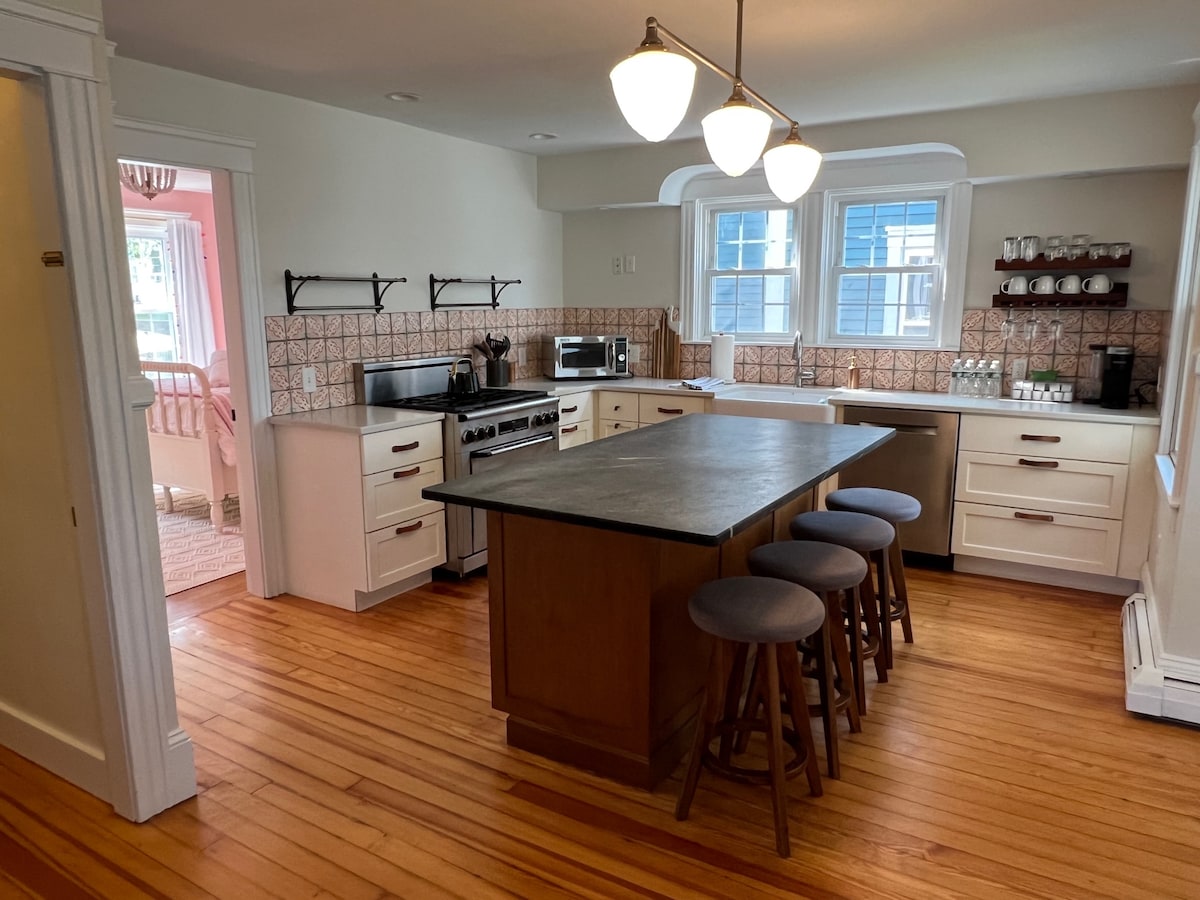 आमच्या ऐतिहासिक, नुकत्याच नूतनीकरण केलेल्या 1807 घराच्या दुसऱ्या मजल्याच्या गेस्ट सुईटमध्ये वास्तव्य करत असताना ब्रिस्टलच्या कार्यरत हार्बर एरियाचा आनंद घ्या. प्रुडेन्स आयलँड फेरी डॉक, ऐतिहासिक रॉबिन रग मिल, रेस्टॉरंट्स, दुकाने आणि ईस्ट बे बाईक मार्ग आणि रॉजर विल्यम्स युनिव्हर्सिटी किंवा कोल्ट स्टेट पार्कपर्यंत पाच मिनिटांच्या ड्राईव्हपासून फक्त पायऱ्या. (प्रोव्हिडन्स आणि न्यूपोर्ट दरम्यान अर्ध्या रस्त्यावर वसलेले — एक परिपूर्ण लोकेशन!) *टीपः आमचा सुंदर मुख्य मजला/समोरची पायरी लग्न आणि इतर फोटोग्राफी सेशन्ससाठी भाड्याने दिली जाऊ शकते.