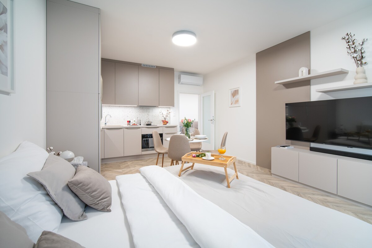 आरामदायक, एअर कंडिशनिंगसह ब्रनोच्या मध्यभागी असलेले नवीन अपार्टमेंट.