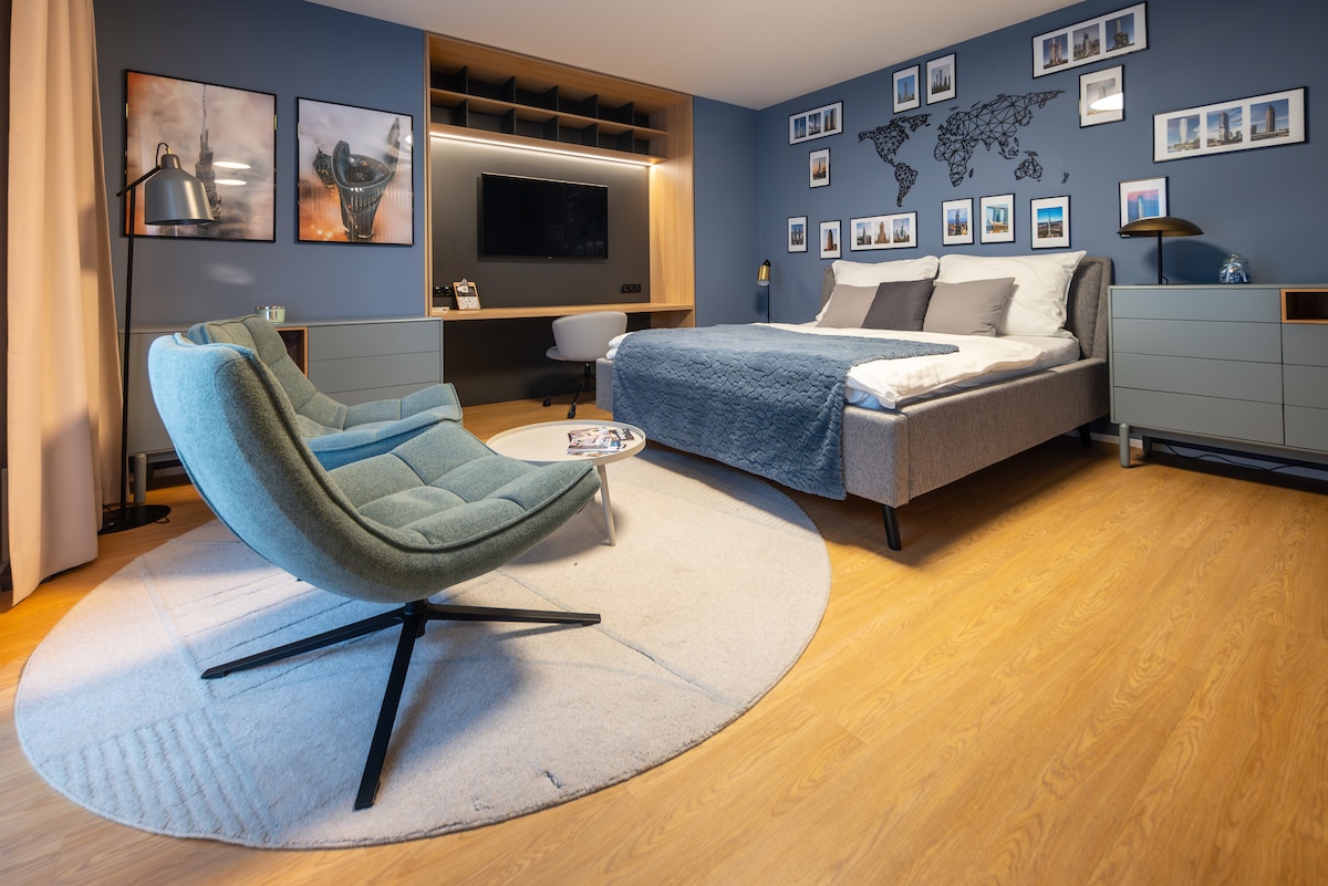 डिझायनर वन बेडरूम अपार्टमेंट व्हाईट