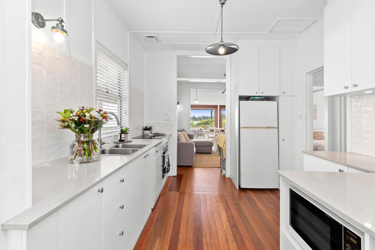 टोमागा नदीचे विस्तृत दृश्ये असलेले लोकप्रिय मोसी पॉईंटमधील प्रशस्त वॉटरफ्रंट होम! दिव्यांगांसाठी अनुकूल, पाळीव प्राण्यांसाठी अनुकूल (ॲप्लिकेशनवर) आणि विनामूल्य वायफाय. ओपन प्लॅन लिव्हिंग/डायनिंग एरिया, मोठा एंटरटेनिंग डेक, प्रशस्त मास्टर सुईट, लहान मुलांसाठी खेळण्यासाठी मोठे लॉन एरिया. 2 कुटुंबांसाठी भरपूर जागा किंवा इन - लॉज आणा! चहा, कॉफी, दूध इत्यादी पुरविल्या जाणाऱ्या स्टार्टरच्या वस्तूंचे स्वागत करा. सर्व लिननने $ 80 च्या शुल्कासाठी प्रदान केले. शांत निवासी क्षेत्र, बोट रॅम्पपासून फक्त काही मीटर अंतरावर परफेक्ट एस्केपसाठी आहे!