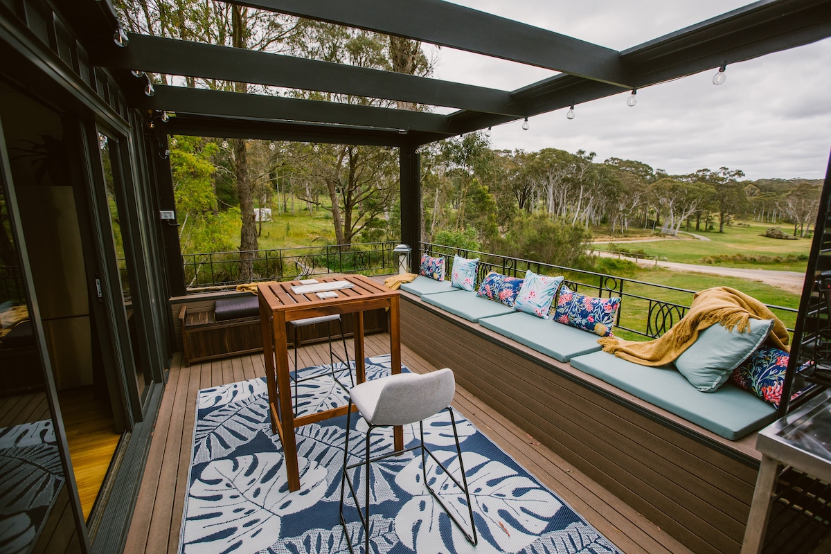 @littleburrow_cabinandcottage A relaxing couples retreat at this stylish tiny house on 6 peaceful acres of our boutique equestrian property 2km from the charming rural village of Exeter with its popular cafe. Surrounded by small farms and the peace of the countryside while still being only a drive-(Bundanoon 10mins Mossvale 15min drive) to the charming towns of the Southern Highlands. Its especially quiet at night-enjoy the firepit & outdoor bath while gazing at the stars. Small dogs on request