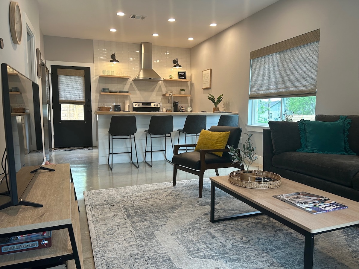 Pet-friendly ЁЯР╢ Experience 1940s charm in this updated 2BR/2BA home. Enjoy a fully-stocked kitchen with gas oven, in-unit washer/dryer, and Apple TV. Both bathrooms are newly remodeled. Centrally located: a scenic 1-mile walk through historic neighborhoods to downtown Bryan, 3 miles to Legends Complex, and a 4-mile drive to Texas A&M campus. Ideal for weekend getaways in Aggieland.