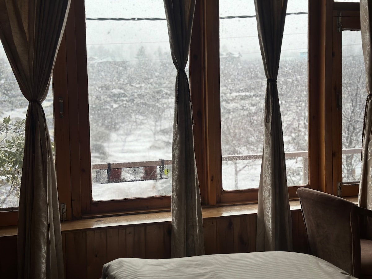 आरा होमस्टे हे बुरवा गावाजवळील एक कॉटेज स्टाईल केलेले कुटुंब आहे, जे मनालीपासून अंदाजे 6.5 किमी अंतरावर आहे, सफरचंदांच्या बागांमध्ये शांतपणे वसलेले आहे आणि आजूबाजूला बर्फाने झाकलेल्या पर्वतांकडे पाहत आहे. बाल्कनी असलेली ही रूम तुम्हाला बर्फाच्छादित शिखरे (बियास कुंड ग्लेशियर)आणि प्रॉपर्टीच्या सभोवतालच्या विशाल बागांचे संपूर्ण दृश्य देते. एक खाजगी संलग्न बाथरूम आणि स्वयंपाक करू इच्छिणाऱ्या गेस्ट्ससाठी शेअर केलेली किचन सुविधा आहे. याव्यतिरिक्त, आमच्याकडे आमच्या गेस्ट्ससाठी इन - हाऊस मल्टी - पाककृती कॅफे देखील आहे