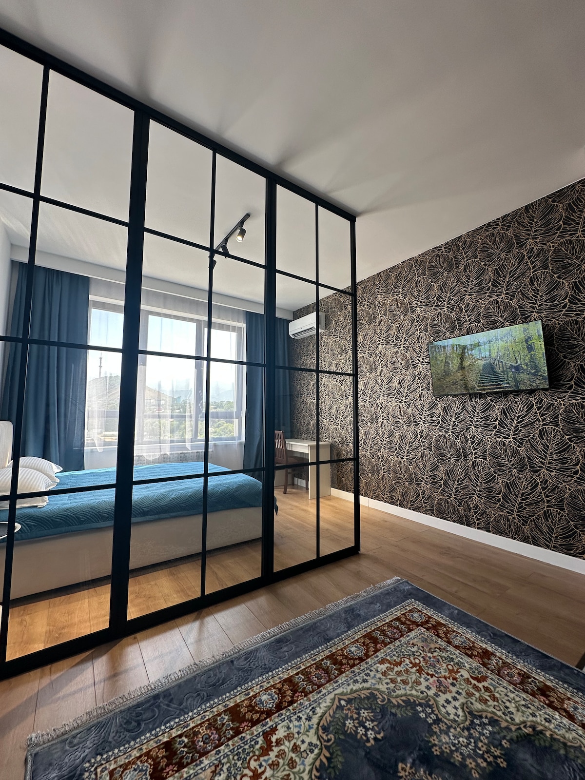 Welcome to your ideal stay in Almaty! Enjoy breathtaking mountain and city views right from your window. -7 minutes to Metro Station -сomfortable bed and cozy sofa -fully equipped kitchen -modern bathroom with fresh towels and toiletries - Wi-Fi and SmartTV The apartment is located in a safe and lively district, close to cafés, supermarkets, pharmacies, shopping malls! Self-check-in available Always ready to assist you — feel free to message any time. Relax, explore, feel at home!