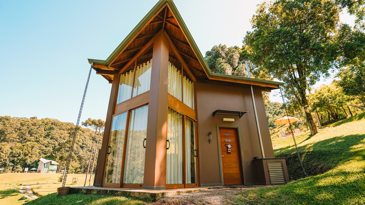 Robinson Cottage - Viva momentos inesquecíveis no nosso PEQUENO PARAÍSO NA MONTANHA! Chalés modernos envidraçados com arquitetura moderna, solarium e jacuzzi dupla formam seu SPA privativo. Piso aquecido e lareira garantem conforto nos dias frios. Desfrute do lago com pesca esportiva, da trilha charmosa e, NOVIDADE, da cesta de café da manhã para começar o dia com sabor e aconchego!