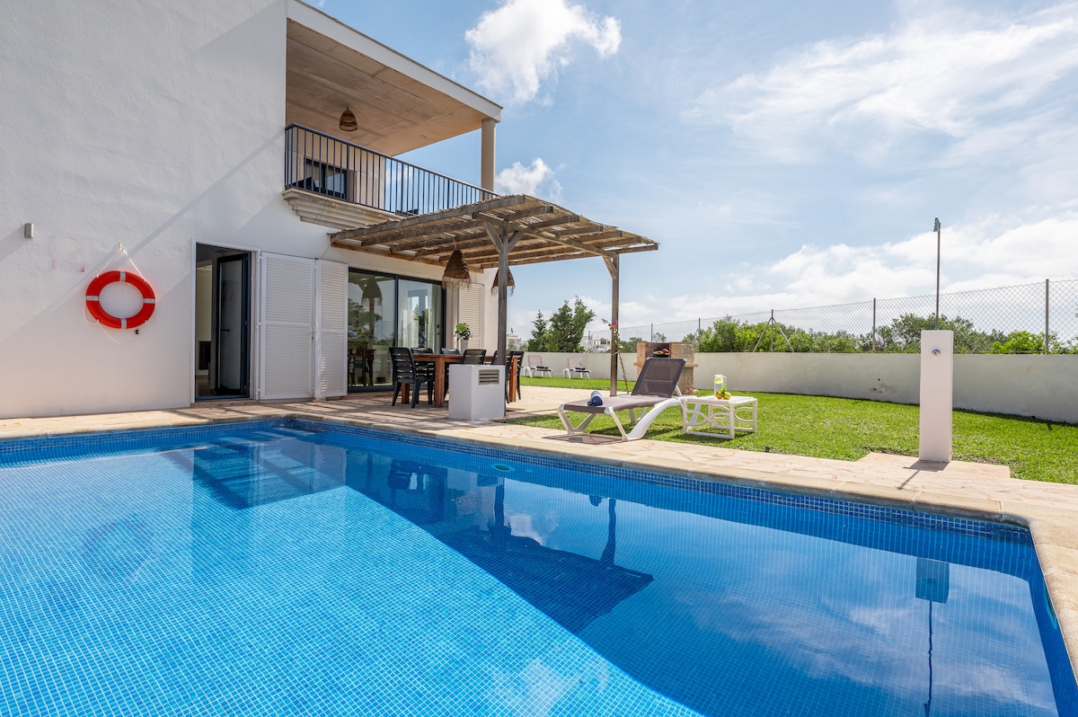 व्हिला मारिलूझ एस् फोर्टी - कॅला एगोस, (कॅला डी'ओर) या सुंदर वाळूच्या "कॅलो डेस पॉ" पासून 300 मीटर अंतरावर आहे. हे कुटुंबासाठी अनुकूल लोकेशन आहे. प्रत्येक रूम, लिव्हिंग रूम आणि किचनमध्ये एअर कंडिशनिंग आहे. पूल खारे पाणी आहे. CO2 वापर कमी करण्यात मदत करण्यासाठी सोलर पॅनेल बसवले गेले आहेत. एक आऊटडोअर जिना डबल बेडरूम, बाथरूम आणि टेरेससह वरच्या स्टुडिओकडे जातो. पूलभोवती बार्बेक्यू असलेले खाजगी टेरेस.