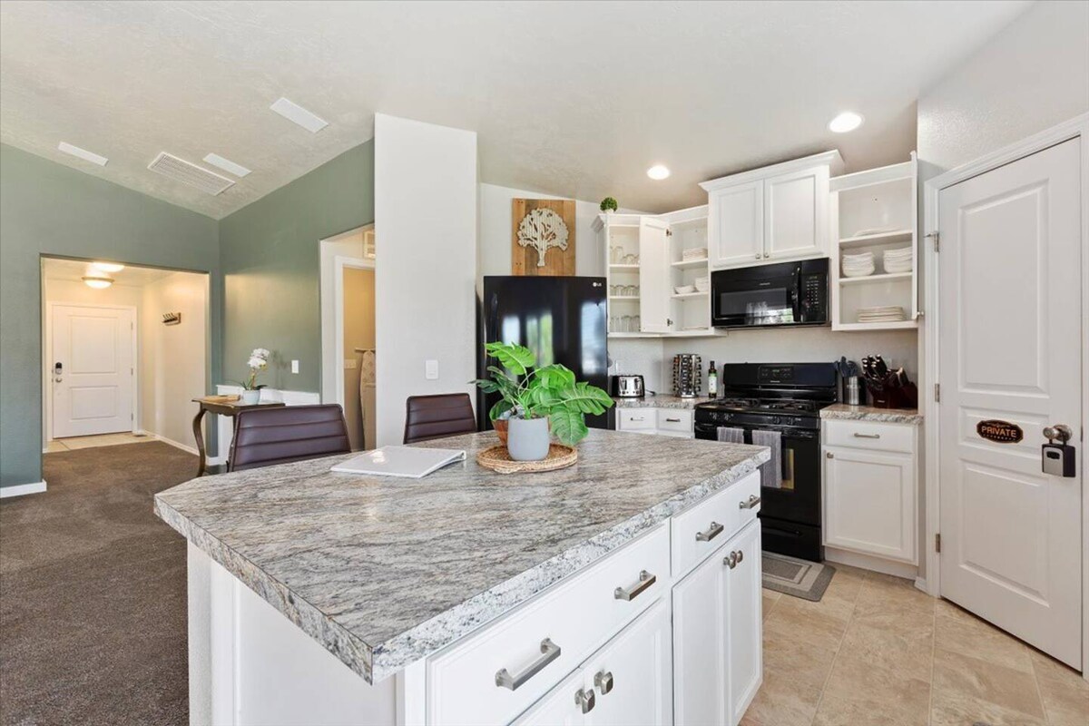जेड कॉटेजमध्ये तुमचे स्वागत आहे! तुम्ही वीकेंडच्या सुट्टीसाठी किंवा विस्तारित वर्क ट्रिपसाठी भेट देत असाल तरीही, हे आरामदायक कॅल्डवेल होम आरामदायक वास्तव्यासाठी विचारपूर्वक तयार केले गेले आहे. इंडियन क्रीक प्लाझाजवळ स्थित, तुम्ही हंगामी कार्यक्रम, डाऊनटाऊनमधील दुकाने, डायनिंग आणि वाइनरीज यांच्या अगदी जवळ असाल. एक्सप्लोर केल्यानंतर, आरामासाठी डिझाइन केलेल्या शांत जागेत आराम करा. विचारपूर्वक होस्टिंग आणि स्पष्ट कम्युनिकेशन याबद्दल आम्हाला स्वतःचा अभिमान आहे आणि तुमचे स्वागत करायला आम्हाला आवडेल!!