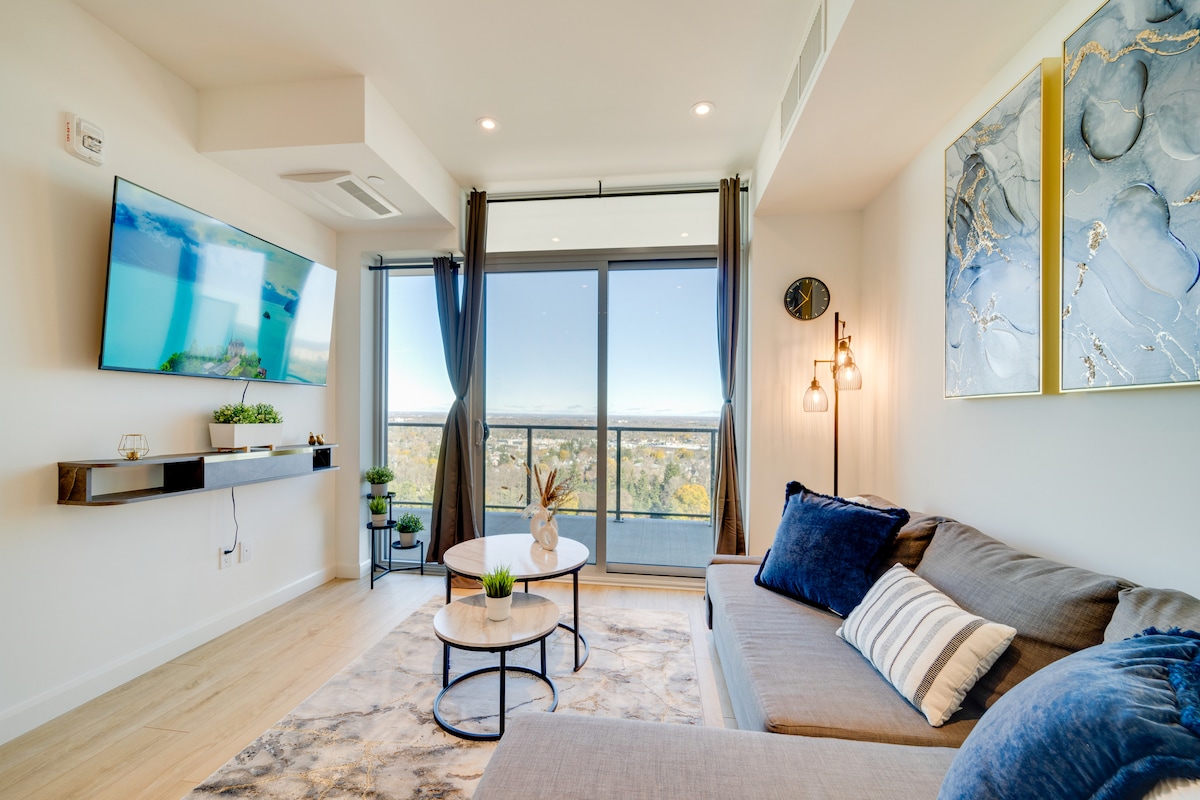 तुम्ही कामासाठी किंवा शहरातील सुट्टीसाठी भेट देत असाल तरीही, हे आधुनिक एक बेडरूमचे काँडो किचनरच्या मध्यभागी सुंदर शहराच्या नजार्यासह आराम आणि सुविधा प्रदान करते. ओपन-कॉन्सेप्ट लेआउटमध्ये एक आरामदायक बेडरूम, स्लीक बाथरूम आणि एक सोफा बेड आहे—जोडप्यांसाठी, लहान ग्रुप्ससाठी किंवा बिझनेस प्रवाशांसाठी योग्य आहे. निश्चिंत व्हा, रिचार्ज करा आणि खरोखर घरासारखे वाटणार्या सुलभ वास्तव्याचा आनंद घ्या. तुमचे वास्तव्य आजच बुक करा!