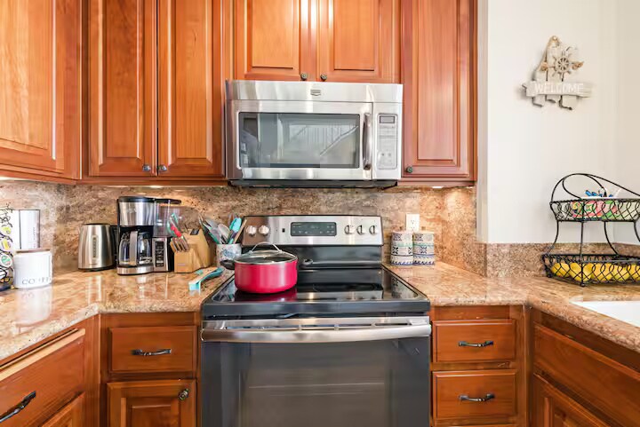 नॉर्थ कोस्ट व्हिलेजमधील बीचवर नुकत्याच नूतनीकरण केलेल्या समुद्राच्या व्ह्यू काँडो पायऱ्यांमध्ये तुमचे स्वागत आहे. पांढऱ्या क्वार्ट्ज काउंटरटॉप्ससह नवीन स्टेनलेस स्टील किचन उपकरणांपासून ते वॉक इन शॉवरसह सुंदर बाथरूमपर्यंत सर्व काही अगदी नवीन आहे. किचनमध्ये नवीन कॅबिनेट्स आहेत आणि तुम्ही निवडल्यास घरी बनवलेले जेवण बनवण्यासाठी तुम्हाला आवश्यक असलेली प्रत्येक गोष्ट आहे. एक कॉफी मेकर आणि कॉफी दिली आहे. संपूर्ण काँडो सजवण्यासाठी बीच थीमचा वापर केला गेला ज्यामुळे तुम्ही नंदनवनात आहात असे तुम्हाला खरोखर वाटते.