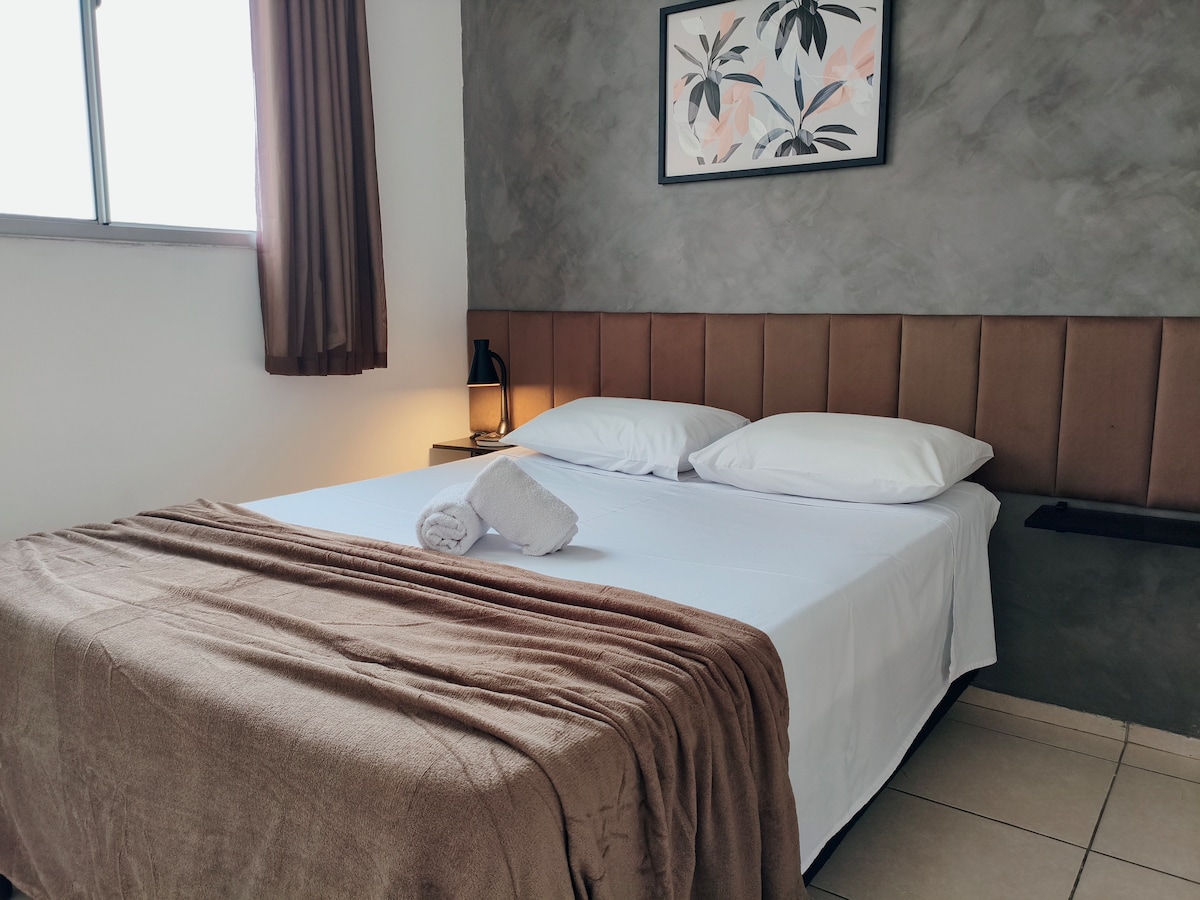 आरामदायक, आरामदायक आणि व्यावहारिक! आमच्या संपूर्ण आणि उबदार अपार्टमेंटमध्ये तुमचे स्वागत आहे, जे शांतता आणि आराम शोधत असलेल्यांसाठी आदर्श आहे. या जागेमध्ये 2 वातानुकूलित बेडरूम्स, टीव्ही आणि वायफाय असलेली लिव्हिंग रूम, सुसज्ज किचन, स्वच्छ बाथरूम आणि जमिनीवर चिन्हांकित जागा असलेली पार्किंग लॉट आहे, ज्यामुळे तुमच्यासाठी अधिक सुरक्षा आणि व्यावहारिकता सुनिश्चित होते. येथे तुम्हाला आराम करण्यासाठी आणि घरी असल्यासारखे वाटण्यासाठी योग्य वातावरण मिळेल