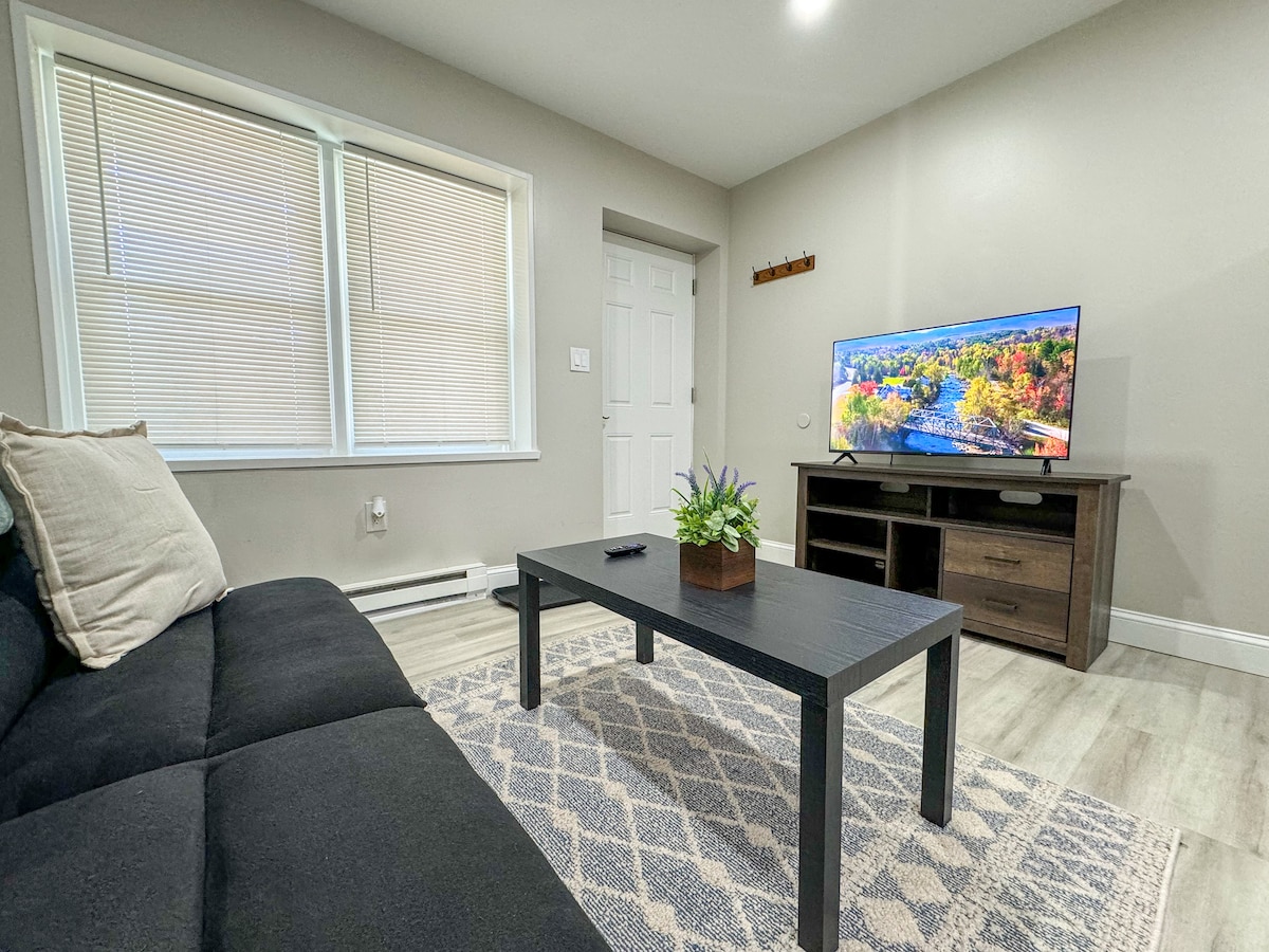 तुमच्या परिपूर्ण पहिल्या मजल्याच्या रिट्रीटमध्ये तुमचे स्वागत आहे. प्रॉपर्टीवर वुडलँड ट्रेल्स, बोग एमटी सारख्या स्थानिक हाईक्स, एक सुंदर धबधबा आणि बरेच काही. तुमचे कयाक आणि पॅडल ग्रॅफ्टन तलाव किंवा प्लीझंट लेक आणा आणि ब्लूबेरी बेटावरील खडकातून उडी मारा. सुनापी माऊंटन स्की एरियापासून फक्त 30 मिनिटे आणि रॅग्ड एमटी स्की रिसॉर्टपासून 21 मिनिटे. तुम्ही उतारांचा आनंद, निसर्गाची शांतता किंवा दोन्ही गोष्टी शोधत असाल, आमचे Airbnb हे अविस्मरणीय न्यू हॅम्पशायर अनुभवांचे प्रवेशद्वार आहे.