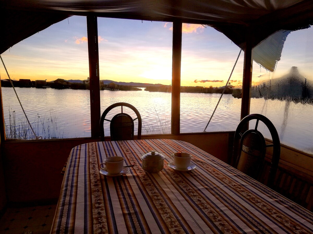 सुंदर सूर्यास्तासह; लेक व्ह्यूच्या शेजारी टिटिकाका तलावावर युरोस लुनिटामध्ये एका छान अनुभवाचा आनंद घ्या. आणि लेक कम्युनिटीजमध्ये काही ॲक्टिव्हिटीज करा.