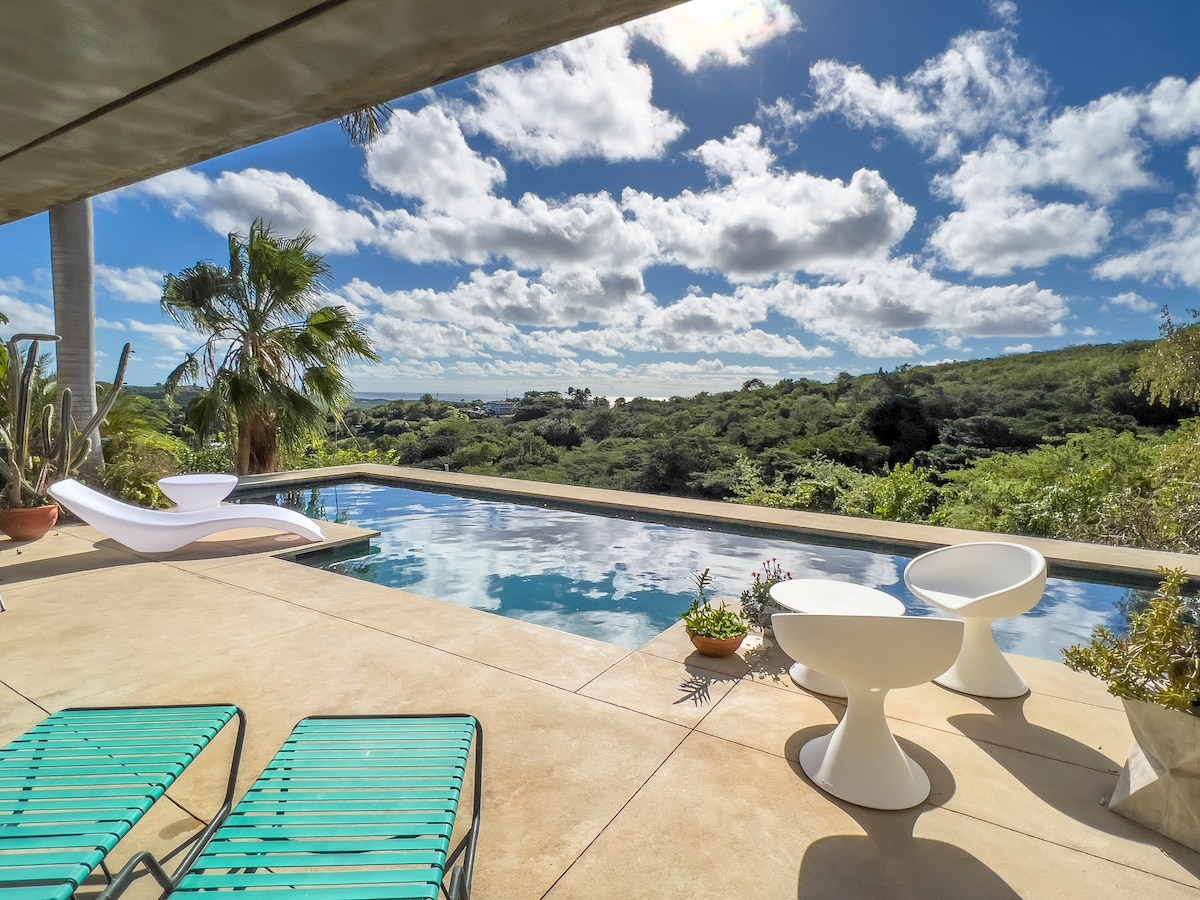 प्रशंसित आर्किटेक्ट जॉन हिक्स यांनी डिझाइन केलेले हे निसर्गरम्य बेट हे अटलांटिक महासागर आणि कॅरिबियन समुद्राच्या नेत्रदीपक दृश्यांसह एका हवेशीर टेकडीवर वसलेले एक शांत ओएसिस आहे. लॉफ्टमध्ये एक खाजगी रूफटॉप टेरेस, ओपन - एअर शॉवर, सुसज्ज किचन, हाय थ्रेड काउंट शीट्स, ओव्हरसाईज केलेले प्लश टॉवेल्स, मजबूत वायफाय आणि एक अनोखा सुंदर शेअर केलेला पूल आहे. प्रॉपर्टीची प्रायव्हसी असूनही, विक्वेसचे सर्वोत्तम बीच, रेस्टॉरंट्स आणि ट्रेल हेड्स काही मिनिटांच्या अंतरावर आहेत.