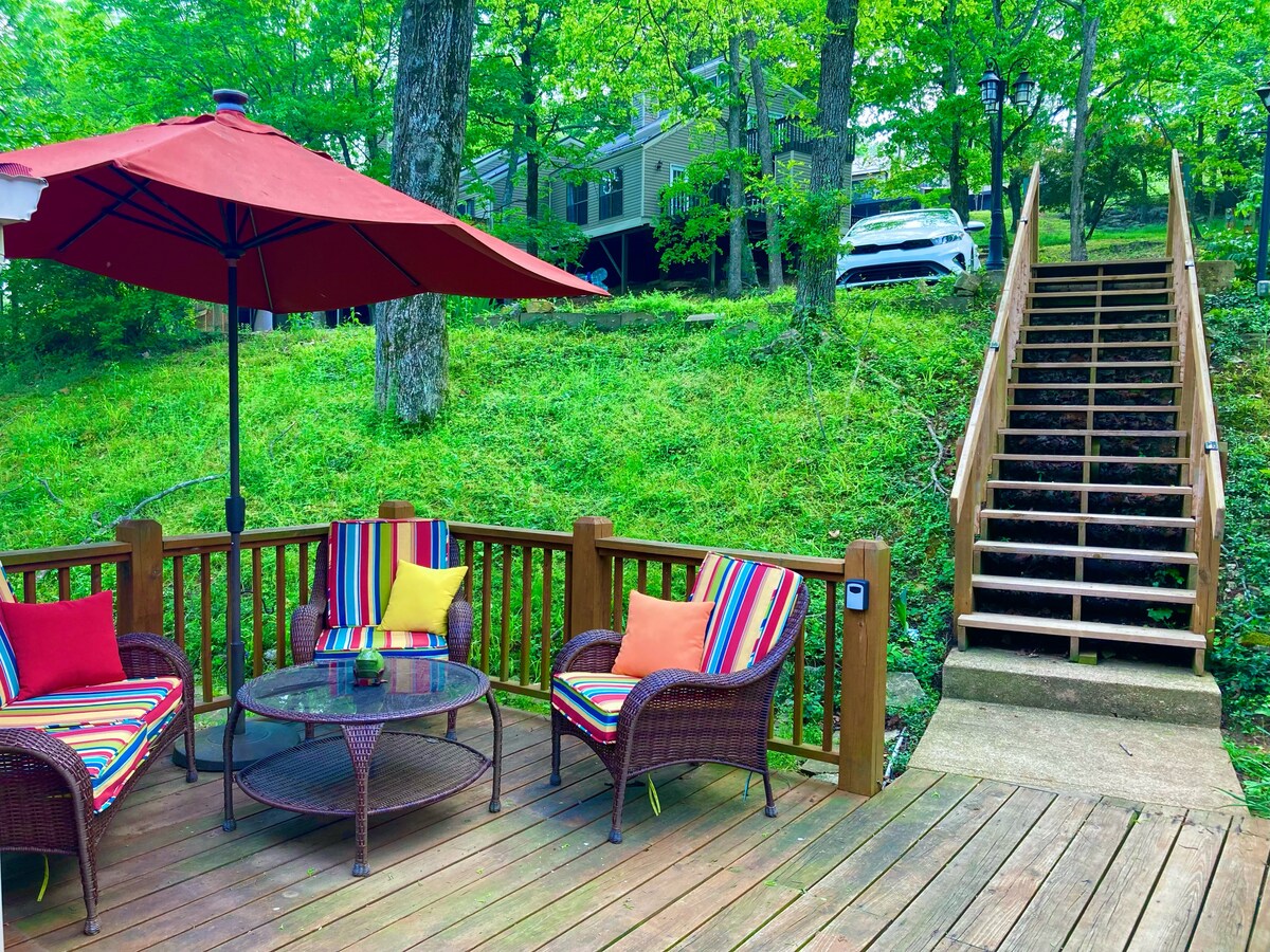 द हब व्हेकेशन रेंटल अपार्टमेंटमध्ये ओझार्क्सचा अनुभव घ्या – माऊंटन बाइकिंग उत्साही, सक्रिय कुटुंबे, मैत्रीपूर्ण ट्रिप्स आणि मित्र ग्रुप्ससाठी योग्य बेसकॅम्प. काँक्रीट भिंती आणि छत यासारखे आर्किटेक्चरल घटक घराच्या सुखसोयींसह एकत्र करून आधुनिक औद्योगिक शैली तयार करतात, जे एका मोठ्या शहरातील डाउनटाउन लॉफ्टची आठवण करून देतात. प्रशस्त, खाजगी आणि अविश्वसनीयपणे शांत, आम्ही एक अशी जागा तयार केली आहे जी स्वागतार्ह आहे तितकीच कार्यक्षम आहे. 2 बेडरूम्समधील 4 बेड्स ही एक उत्तम जागा बनवतात.