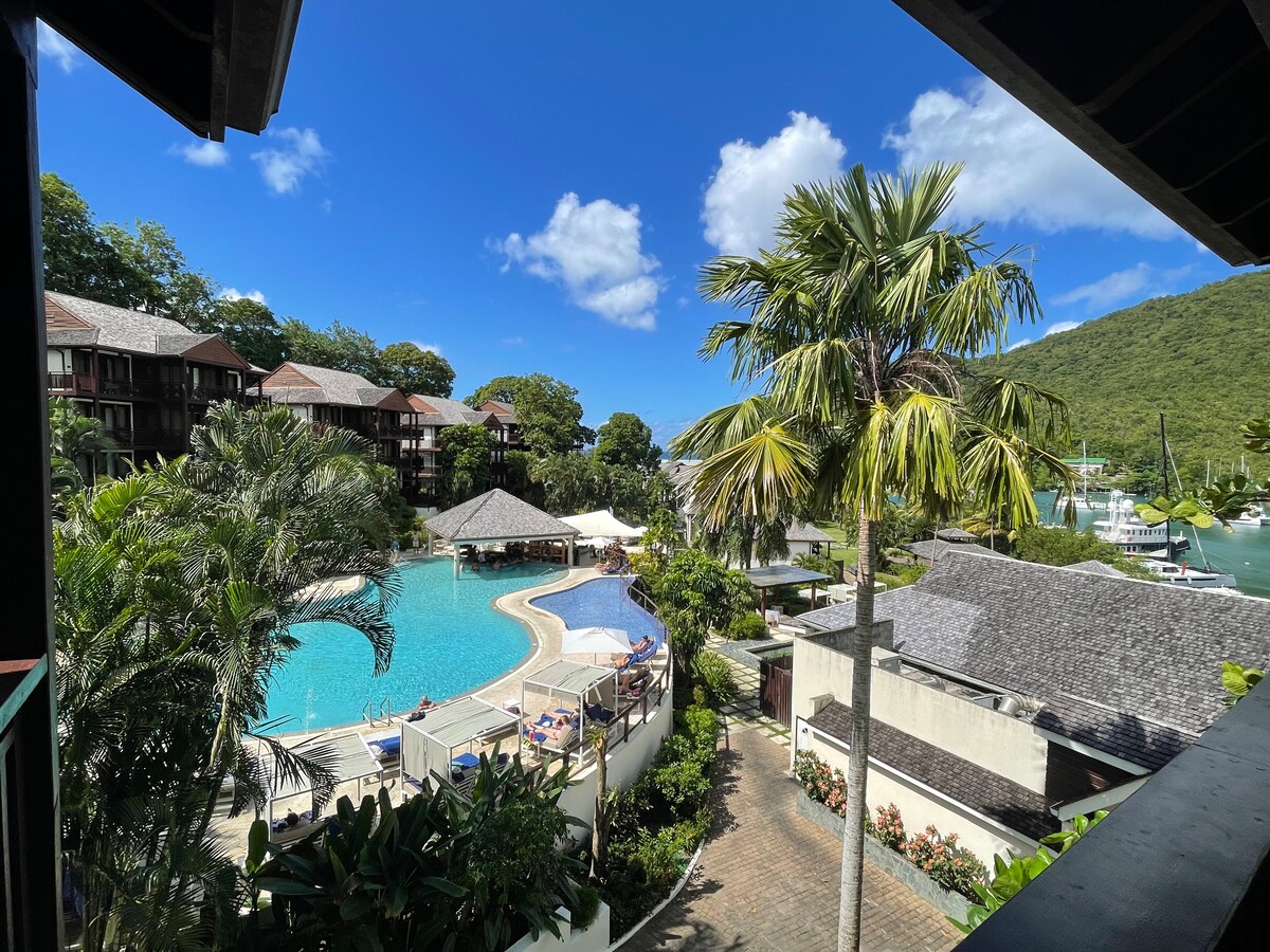 मॅरिगॉट बेच्या मध्यभागी असलेल्या आमच्या सुंदर, प्रशस्त एक बेडरूमच्या अपार्टमेंटमध्ये तुमचे स्वागत आहे, ज्याला संपूर्ण कॅरिबियनमधील सर्वात सुंदर उपसागर मानले जाते! लाखो डॉलर्सचे सुपर यॉट्स तुमच्या बाल्कनीतून जबरदस्त मरीनामध्ये जातात, जवळपासच्या बीचवर आराम करतात किंवा शेजारच्या झोएट्री रिसॉर्टच्या दोन पूल्समध्ये विशेष ॲक्सेसचा आनंद घेतात ते पहा. हे अपार्टमेंट मरीना व्हिलेजच्या मध्यभागी आहे, जे 7 इमारतींचे नयनरम्य कलेक्शन आहे, जे मध्यवर्ती अंगणात बांधलेले आहे, खाडीच्या पलीकडे पाहत आहे.