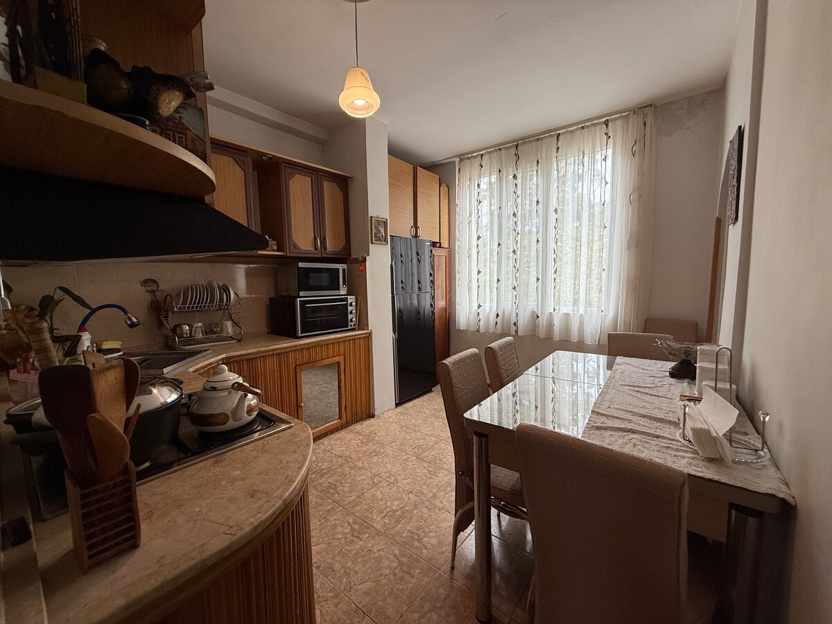 जुन्या तिबिलिसीच्या डाउनटाउनमध्ये नुकतेच नूतनीकरण केलेले अपार्टमेंट. एक बेडरूम(2 सिंगल बेड), एक किचन(पूर्णपणे सुसज्ज), एक बाथरूम, हाताने बनवलेली आणि अपार्टमेंटमध्ये अनोखी सजावट. चालण्याच्या अंतरावर असलेल्या सर्व मुख्य प्रेक्षणीय स्थळे, वाहतुकीची आवश्यकता असू शकत नाही. मेट्रो स्टेशन लिबर्टी स्क्वेअर, तसेच शॉपिंग मॉल गॅलेरिया, बसस्थानके चालण्याच्या अंतरावर 5 मिनिटांच्या अंतरावर आहेत. मध्यवर्ती लोकेशन, तरीही एक शांत आणि शांत अंगण. जलद आणि स्थिर वायफाय, स्वतःहून चेक इन/आऊटची हमी(कोड असलेले लॉकर).