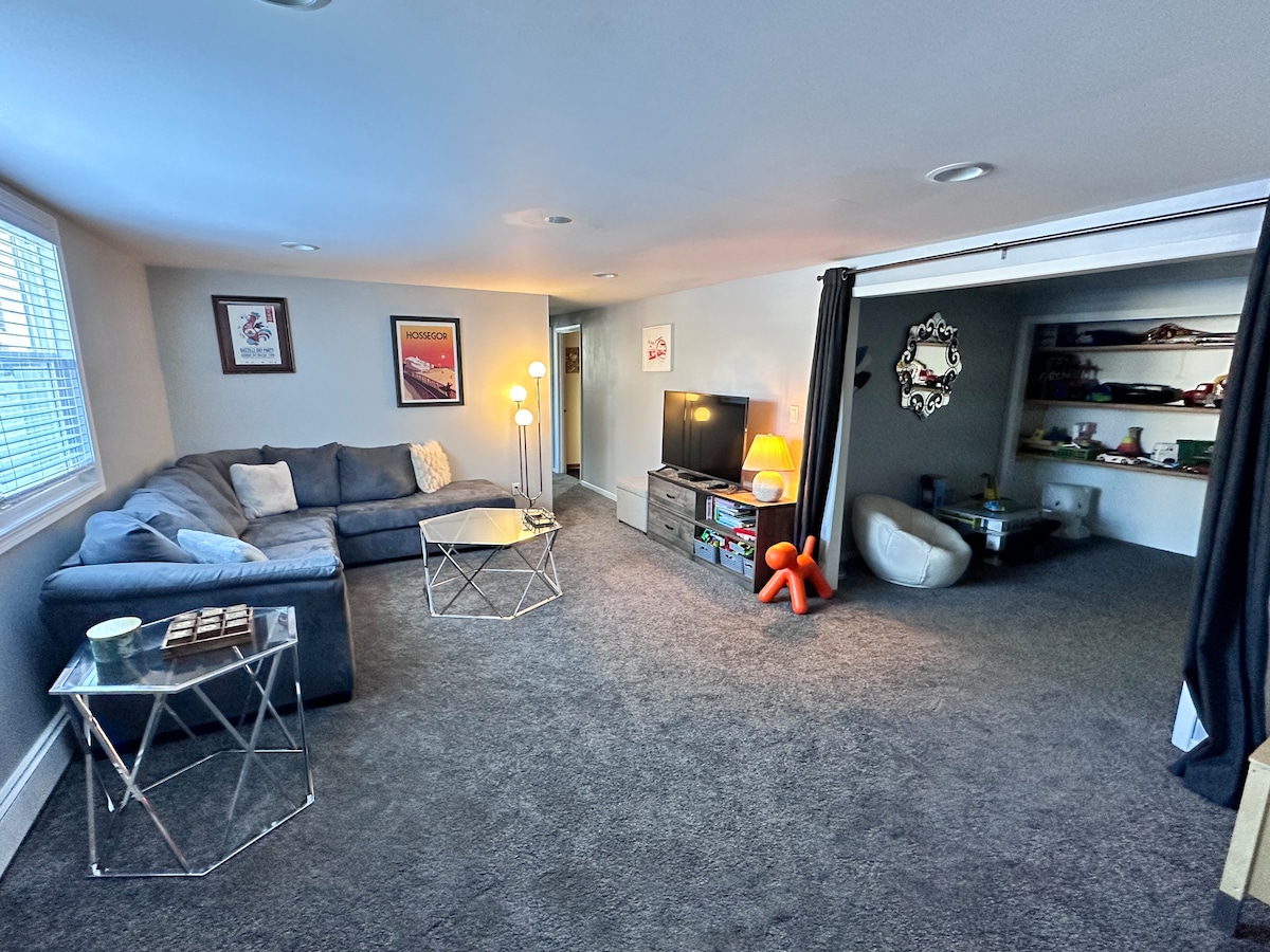 संपूर्ण खालचा स्तर! आधुनिक आणि नूतनीकरण केलेले/किंग बेड