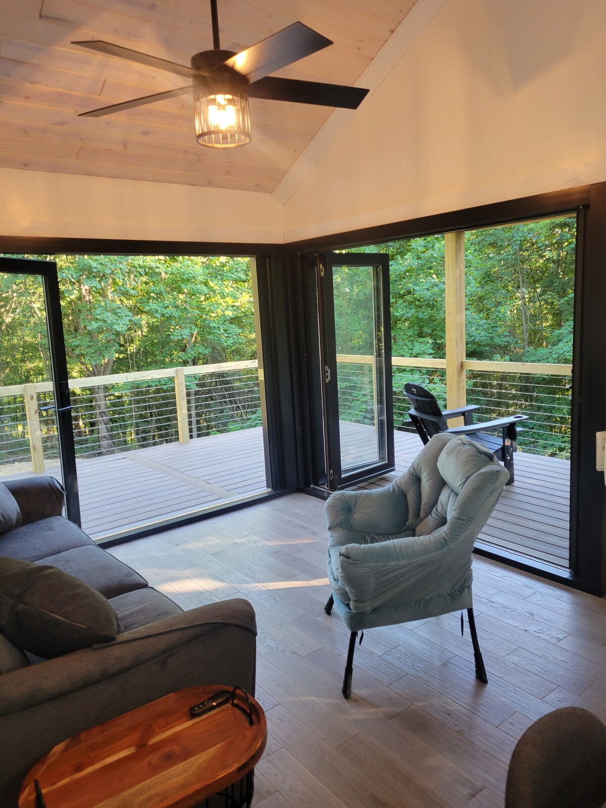 नोव्हेंबर - मार्चसाठी आम्ही गेस्ट्सना हवामान आणि ड्राईव्हवेच्या स्थितीबद्दल बुकिंग करण्यापूर्वी चौकशी करण्याची शिफारस करतो (4WD किंवा AWD सहसा शिफारस केली जाते). नैऋत्य पीएच्या पर्वतांमध्ये खाजगी गेटअवे. ओहायोपिल आणि फॉलिंगवॉटरपासून 5 मिनिटे. प्रशस्त डेक आणि मोठे खुले दरवाजे असलेले छोटे घर जे इनडोअर आणि आऊटडोअर जागा एकल लिव्हिंग एरिया बनवते. लॉरेल हाईलँड्सच्या मध्यभागी स्थित. टीप: काही "अपेक्षित" सुविधा उपलब्ध नाहीत. कृपया बुकिंग करण्यापूर्वी संपूर्ण वर्णन वाचा.
