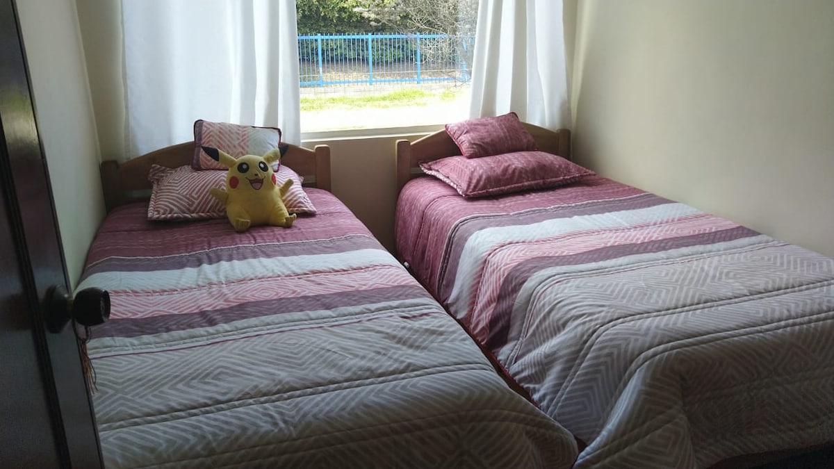 पूर्णपणे स्वतंत्र सुईट, उबदार आणि स्वतःच्या बाथरूमसह. माझ्याकडे प्रवेशद्वार किंवा स्वतंत्र ॲक्सेस आहे. एका व्यक्तीसाठी किंवा जोडप्यासाठी आदर्श. शांत आणि सुरक्षित ठिकाणी स्थित आहे, जिथे त्यांना सुपरमार्केट्स, सुरक्षा, ट्रान्सफर पॉइंट्स, ड्रग स्टोअर्स, लाँड्रीज, बँका आणि कॉमर्स सर्वसाधारणपणे मिळू शकतात. टी झोनच्या जवळ, अँडिनो क्लिनिक आणि रुग्णालये (15 मिनिटे चालणे) आणि व्हर्चुअली काम करण्यासाठी स्वतंत्र आयपी (700 मेगास) सह उत्कृष्ट इंटरनेटसह.