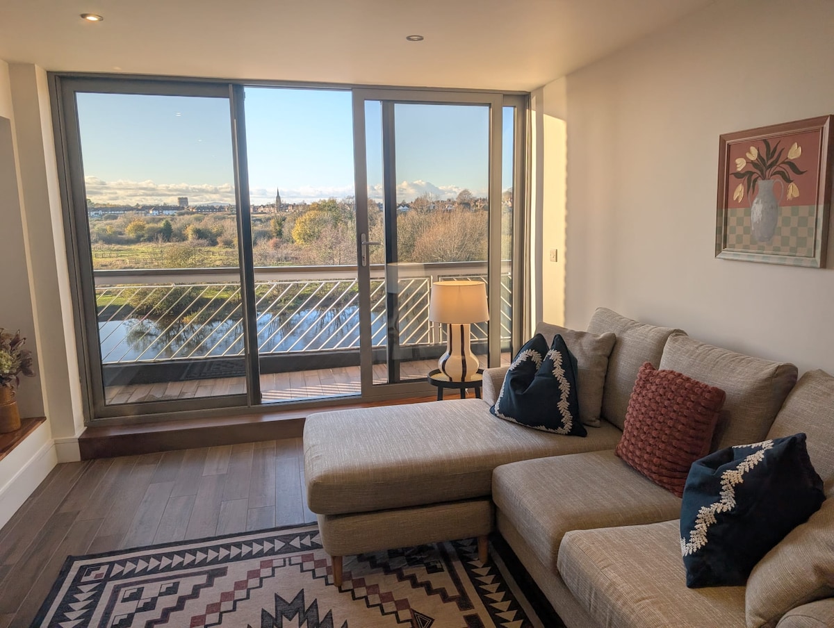 Wake to River Views! Stunning 2 bed. Parking!