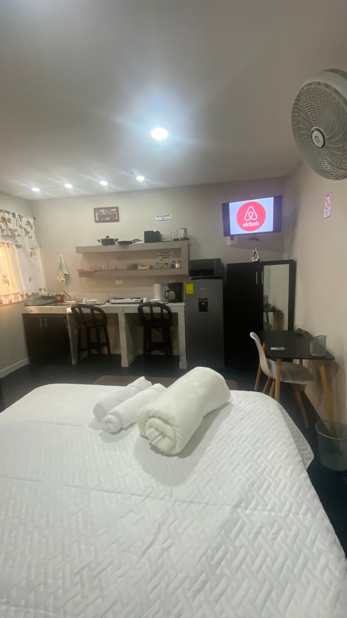 Apartamento Deluxe muy cómodo, la construcción es nueva e independiente, cuenta con 2 habitaciones, una habitación con cama Queen y área de trabajo, la otra habitación con una cama doble y una cama individual. Está ubicado en una zona segura, accesible y céntrica. A pocos metros puedes encontrar lugares para Comer, Comprar, Ejercitarte y Disfrutar. Esta Ubicados a 50 mts. del Estadio Los Cuchumatanes y a 150 mts del Mercado Municipal de la zona 8.