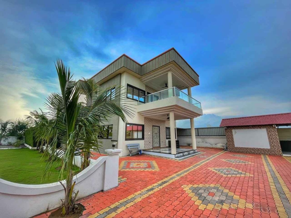 नवसारीपासून 10 मिनिटांच्या अंतरावर नैसर्गिक लँडस्केपच्या मध्यभागी असलेला लक्झरी व्हिला. वीकेंडला तुमच्या मित्रमैत्रिणी किंवा कुटुंबासह पार्टी करण्यासाठी (किंवा शांततेत गेटअवे आणि 5 -6 पेक्षा जास्त व्यक्तींसाठी) जागा परिपूर्ण बनवणारी एक पूल आणि मोठी गार्डन क्षेत्रे समाविष्ट आहेत. विकसित फार्ममधील व्हिला आणि एकत्र येण्यासाठी वापरला जाऊ शकतो. होय, संपूर्ण व्हिला दिला जाईल. इतर गेस्ट्स नाहीत. खाजगी पूल. सर्वात जवळचे रेस्टॉरंट 10 मिनिटांचे असेल. स्विगी आणि झोमाटो डिलिव्हर करतात. नवसारीपासून 12 मिनिटांच्या अंतरावर.