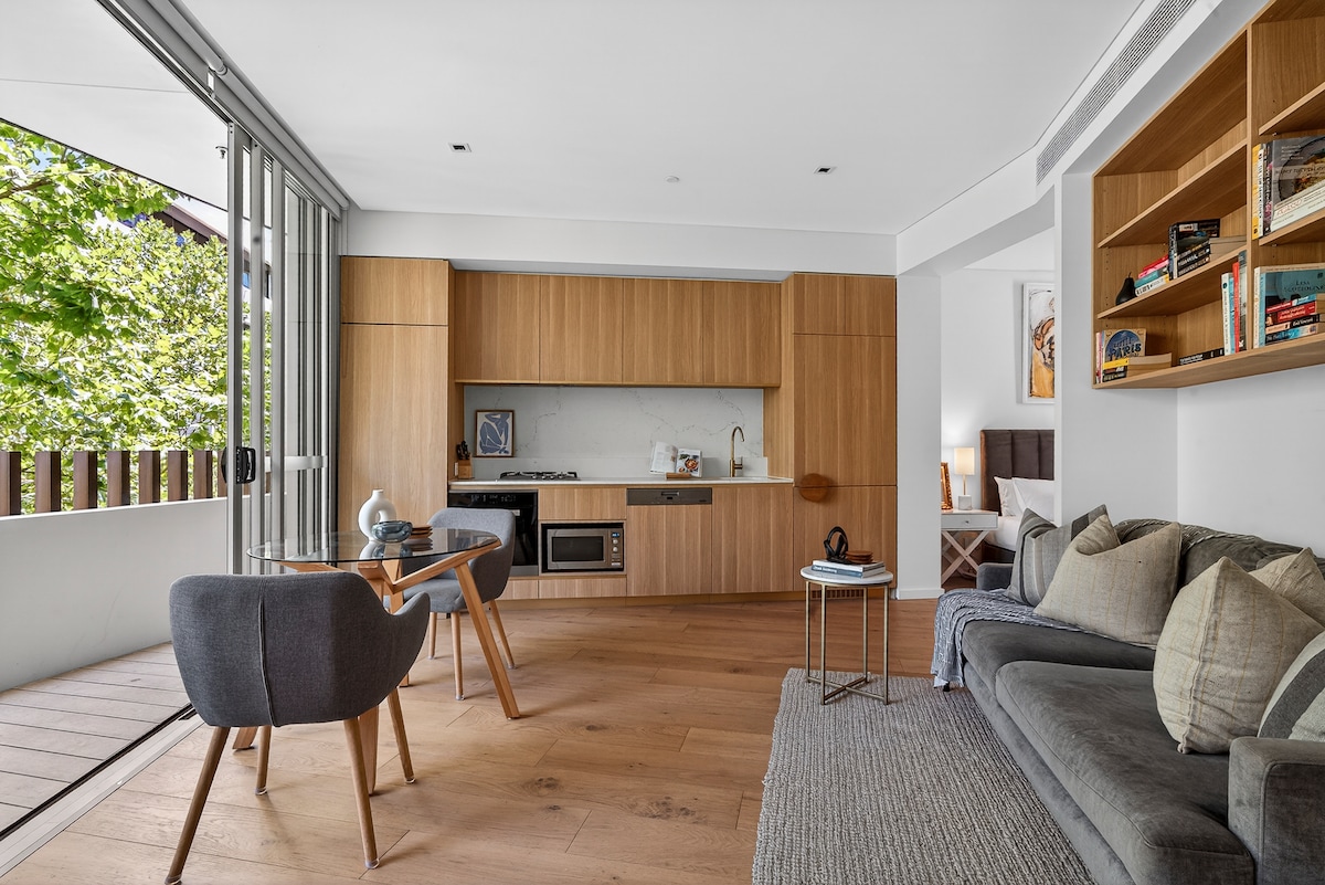 Welcome to your light-filled inner-city escape in the heart of Chippendale. This charming one-bedroom apartment offers a warm and practical home base with a clever open-plan layout, stylish furnishings and everything you need for a relaxed and comfortable stay. The living area is bright and inviting, featuring a queen-size sofa bed and a private balcony framed by leafy views — the perfect spot for a morning coffee or an evening drink.