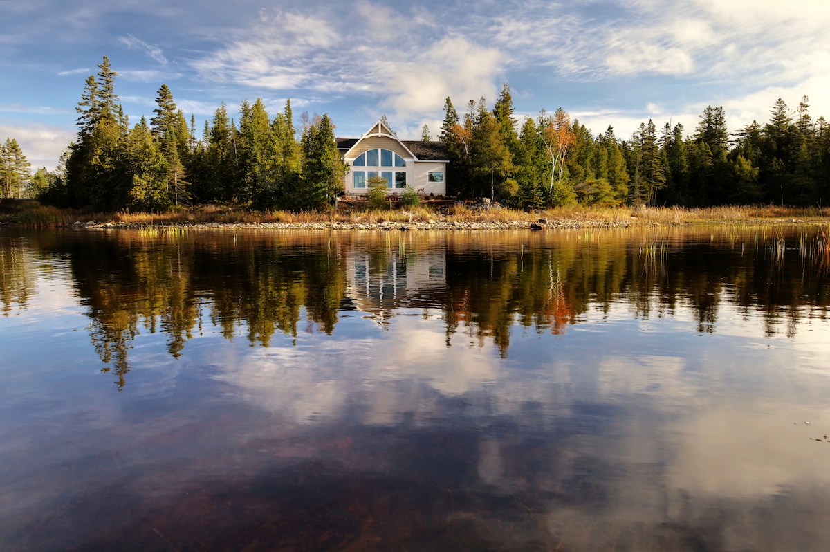 मोहक दृश्यांसह मोहक लेक हाऊस