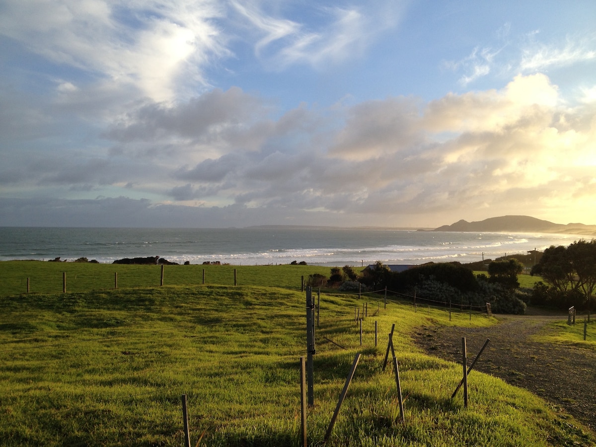 Ivys by the beach . Modern well appointed, clean and cosy, WIFI. This one bedroom home offers a comfy Queen bed plus a sofa bed in the lounge area for extra quests. Full cooking facilities, sofa bed and a short walk to historic town centre and restaurants. The convenience of washer and dryer, plus excellent heating and cooling. Relax on the deck overlooking lush farmland and with views across to Highfield. From the front door you can view The Nut and a short walk to the beaches .