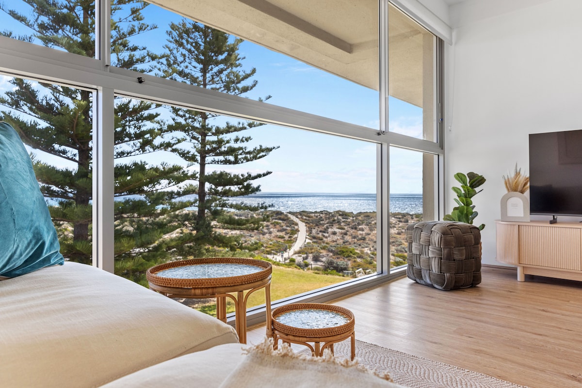 Welcome to Beach Happy – a 2-bedroom apartment with contemporary coastal design and beautiful ocean views. Designed with a stylish mix of natural materials and modern furnishings. Enjoy a shared below-ground pool and easy access to the beach and nearby restaurants — everything you need for a seaside stay. The property is also just a short stroll from the vibrant Scarborough Esplanade, with its cafes, restaurants, and coastal attractions.
