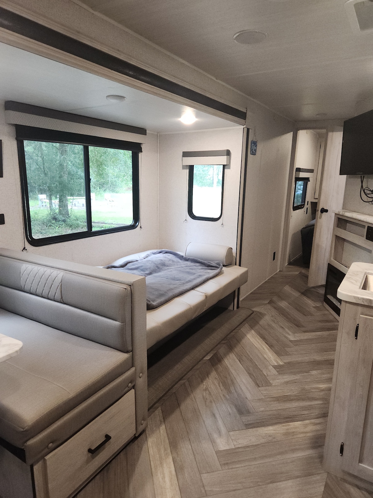 जेव्हा तुम्ही ताऱ्यांच्या खाली राहता तेव्हा या सर्व गोष्टींपासून दूर जा. आमच्या शांततापूर्ण फार्म रिट्रीटमध्ये जा! मुख्य घराच्या मागे, झाडांच्या काठावर, घर - किचन, बाथरूम, वायफाय, एसी/हीटच्या सर्व आरामदायक गोष्टींसह आरामदायक RV मध्ये रहा. मोठ्या फायर पिटजवळील मॉर्निंग कॉफीचा आनंद घ्या, निसर्गरम्य चालण्याचे ट्रेल्स चालवा आणि स्थानिक वन्यजीव शोधा. शहरापासून सुमारे 20 मिनिटांच्या अंतरावर, हे खाजगी आणि शांत ठिकाण आहे. जोडप्यांसाठी, सोलो प्रवाशांसाठी किंवा तुमच्या दाराजवळ निसर्गाबरोबर अनोखी सुट्टीच्या शोधात असलेल्या एका लहान कुटुंबासाठी योग्य.