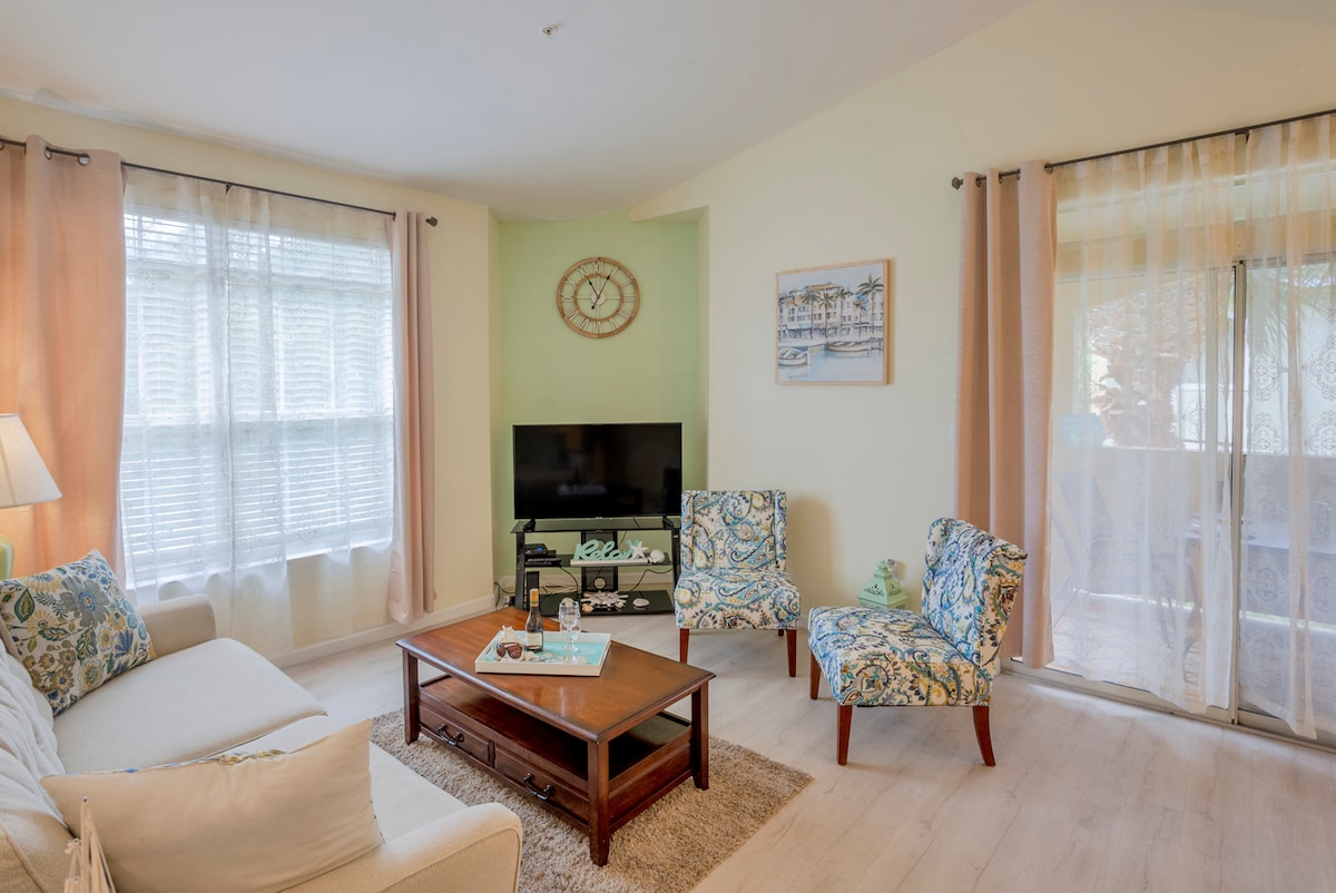 This amazing condo is a 5-minute drive to the beautiful Clearwater Beach,as well as bars, restaurants, and many other attractions. The unit is placed in a beautiful resort-style gated community, which features a clubhouse, heated pool, gym, Wi-Fi, and complimentary parking. This perfect retreat offers full privacy as each room provides separate access to the bathroom. The condo is on the main floor, offering easy access in and out, and includes a laptop-friendly workspace. Just come and relax!
