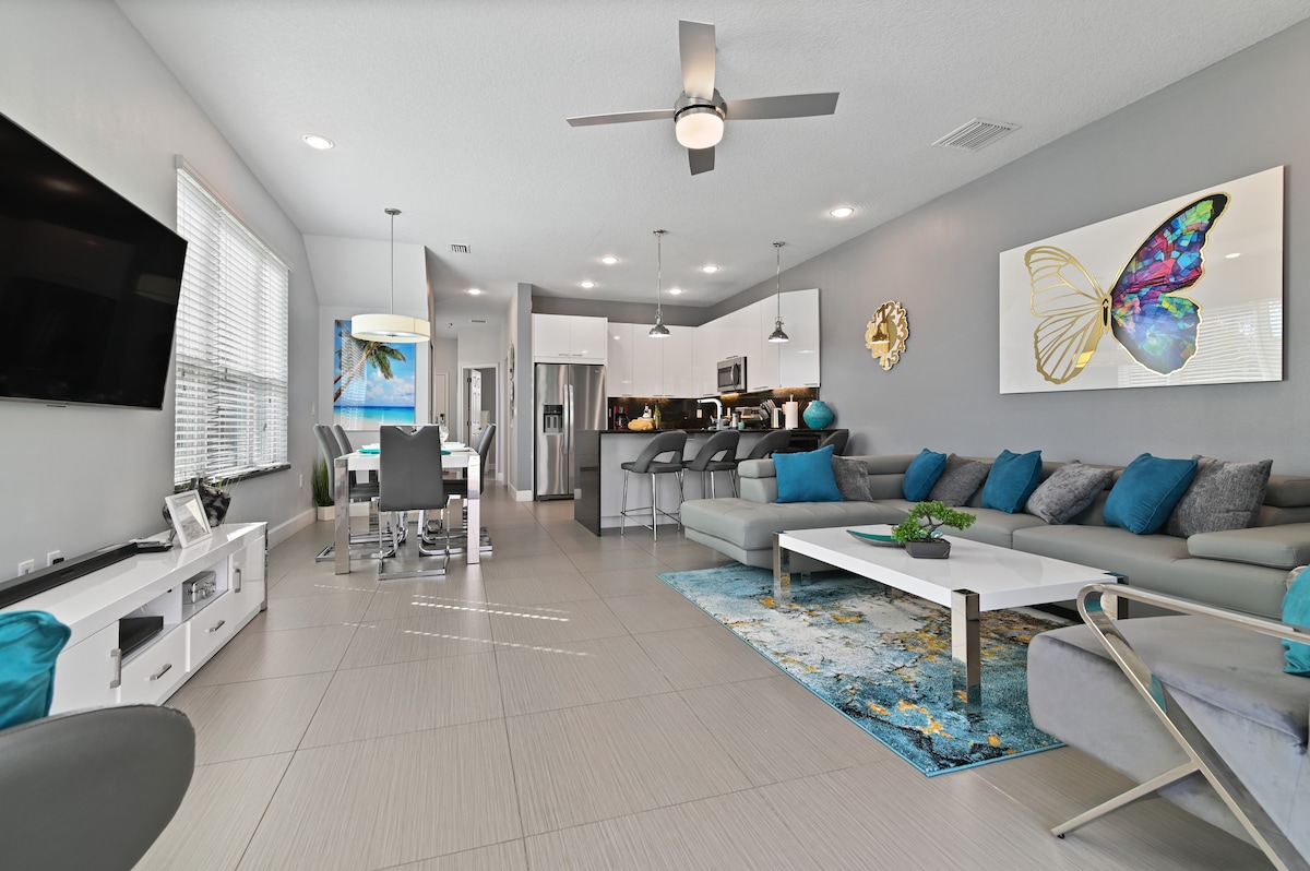 Welcome to our Magical Hideaway, a home-away-from-home that will perfectly complement the lasting memories your family will be creating while visiting the happiest places on earth! This brand new, professionally-appointed 3 bedroom, 3 bathroom fully equipped townhome with all of the comforts of home and the resort-like luxuries with a private dip pool, patio with no rear neighbors, is splendid for families, clubhouse, Games room, GYM. Just short drive away from Animal Kingdom, may restaurants!