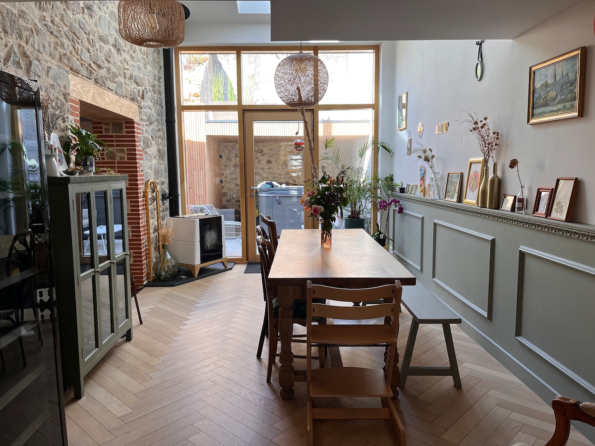 L'Annexe, नॅन्टेस विनयार्डच्या मध्यभागी असलेल्या उबदार आणि पूर्णपणे सुसज्ज निवासस्थानामध्ये तुमच्या बॅटरी रिचार्ज करण्यासाठी आदर्श जागा. दक्षिणेकडील टेरेसवर आराम करा, या नवीन घराच्या स्वच्छ सजावटीचा आनंद घ्या, क्लिसन (5 मिनिटे), नॅन्टेस (रेल्वेने 20 मिनिटे, रेल्वे स्टेशन 500 मीटर अंतरावर), समुद्र (1 तास) किंवा पुई डू फू (35 मिनिटे) च्या मोहकतेचा आनंद घ्या... विनामूल्य पार्किंग, वायफाय, नेटफ्लिक्ससह टीव्ही, कॉफी/चहा उपलब्ध... L'Annexe, विश्रांती घेण्यासाठी एक आदर्श आणि शांत जागा.