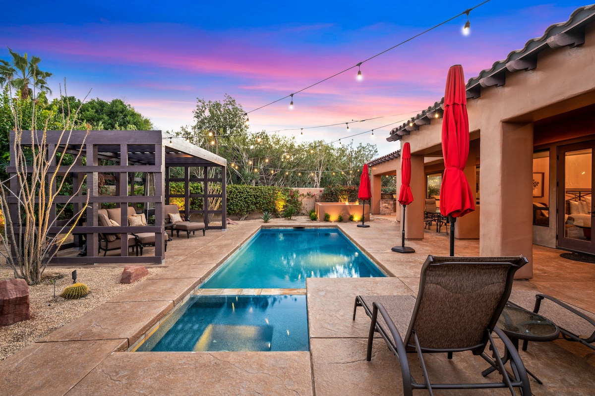 नवीन पूल: आधुनिक वाळवंट घर; पिकलबॉल कोर्ट