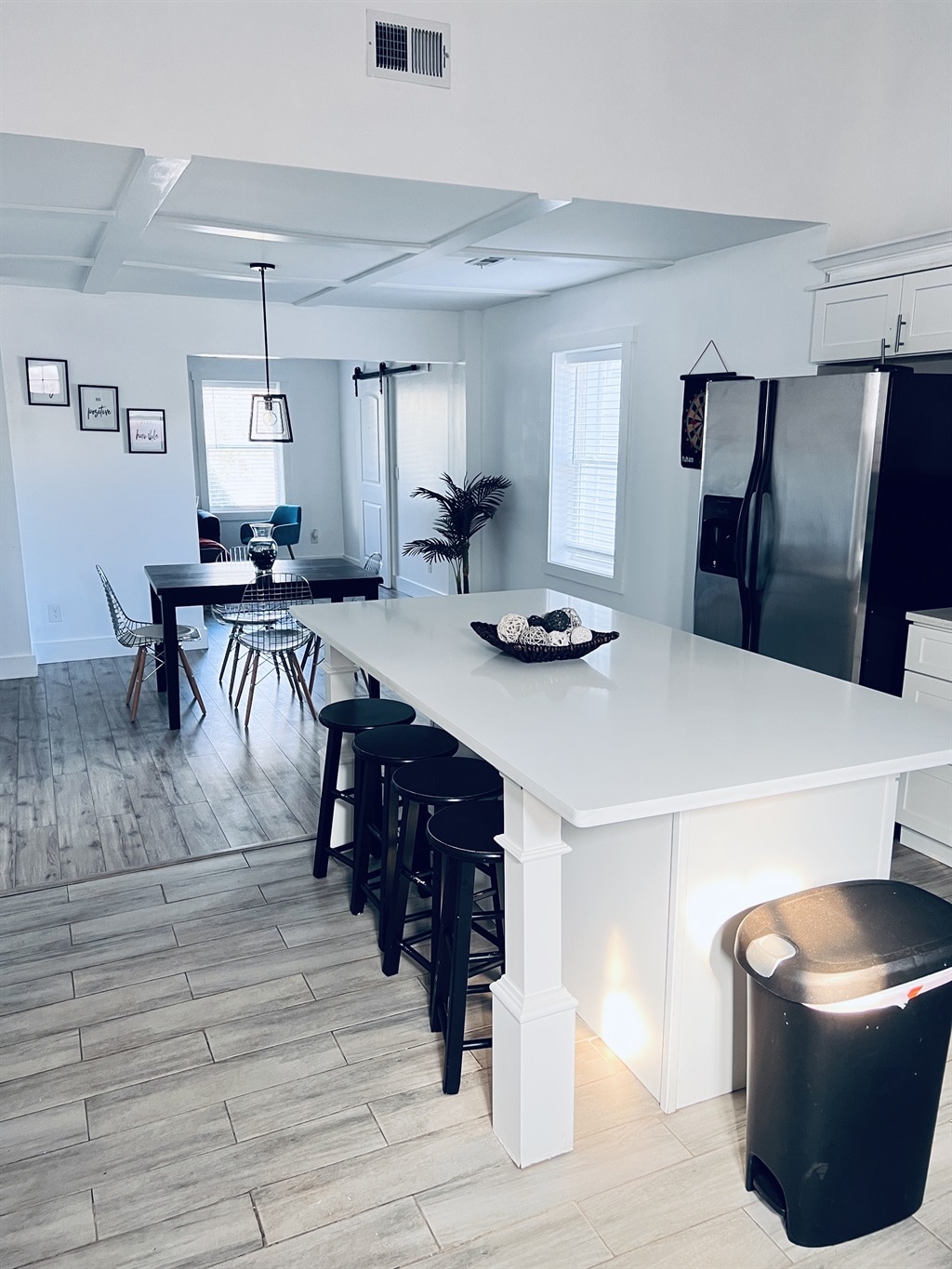 नॉर्थ अटलांटाचा आनंद घेण्यासाठी प्रेरित झालेल्या या उबदार घरात जागे व्हा. हनीबी हा 1950 च्या दशकातील ग्रामीण भागाचा स्वाद आहे ज्यात एक्सपोज केलेल्या बीम सीलिंग्ज, लाकूड फिनिश, तटस्थ ग्रे, स्क्रीन केलेले बॅक पोर्च आणि अंगणात फायर पिट आहे. बिझनेस प्रवास, जोडपे किंवा कुटुंबासाठी एक उत्तम जागा. 1 -2 गेस्ट्ससाठी पुरेशी जागा, परंतु 6 गेस्ट्ससाठी पुरेशी जागा! *कृपया लक्षात घ्या की प्रॉपर्टीवर आतील, बाहेरील आणि स्क्रीन पोर्चसह धूम्रपान नाही. तुम्ही परवानगी मागितल्याशिवाय कोणताही चित्रपट किंवा फोटोग्राफी नाही, शुल्क भरले नाही आणि कंटेंट उघड केला नाही. 1950 चे हे घर मूळतः मिलिटरी हाऊसिंग म्हणून बांधले गेले होते. शांत आसपासचा परिसर व्यवस्थित देखभाल केलेला आहे आणि अजूनही जुन्या घराचे आकर्षण आहे. हे विलक्षण आरामदायक आहे आणि बिझनेस प्रवास, जोडपे, कुटुंबे आणि मित्रांसाठी सुसज्ज आहे. विलक्षण जागा, परंतु 3 बेडरूम्स आणि 2 बाथरूम्स, पूर्ण किचन आणि लिव्हिंग रूम आणि स्क्रीन केलेल्या पॅटीओमध्ये एकत्र येण्याच्या जागेच्या बाहेर पसरण्यासाठी भरपूर जागा. जोडपे आणि सिंगल्स, ही जागा तुमच्यासाठी योग्य आकाराची आहे, जरी ती अधिक झोपू शकते. 4 लोक देखील खूप सहजपणे झोपू शकतात. घर 6 वाजेपर्यंत सामावून घेऊ शकते. आवश्यक असल्यास, आमच्याकडे एअर मॅट्रेस आणि सोफा असल्यामुळे तुमच्याकडे त्यापलीकडे अधिक गेस्ट्स असल्यास कृपया मेसेज करा. मेरीएटा स्क्वेअरपासून 2 मैलांच्या अंतरावर. रोझवेल, जीए पासून काही मिनिटे. सनट्रस्ट पार्कपासून 5 मैल. सहा फ्लॅग्ज व्हाईट वॉटरपासून 2 मैल. केनेसा स्टेट युनिव्हर्सिटी कॅम्पस आणि लाईफ युनिव्हर्सिटी दोन्ही जवळ. i75 पासून 1/2 मैल. अटलांटापासून 8 मैल. विमानतळापासून खूप जवळचे लिफ्ट/उबर. आमच्या प्रसिद्ध "बिग चिकन" लँडमार्कपासून 2 मैल! स्मार्ट लॉक कोडद्वारे फ्रंट आणि बॅक डोअर ॲक्सेस. तुमच्या वास्तव्यासाठी खाजगी घर तुमचेच असेल. शेअर केलेल्या जागा नाहीत. क्वीन साईझ बेड्ससह 2 आरामदायक बेडरूम्स डेबेडसह मिडल ऑफिसमध्ये आणखी 2 लोक झोपतात. पूर्ण किचन, स्क्रीन पोर्च आणि लाँड्री रूम. ड्राईव्हवे आणि कारपोर्ट पार्किंग. AirBNB मालक टेक्स्टद्वारे कधीही उपलब्ध आहे. तुम्हाला काही हवे असल्यास मेसेज करा! आम्ही साईटवर असणार नाही पण तुम्हाला काही हवे असल्यास आम्ही थांबू शकतो! ही प्रॉपर्टी अटलांटा शहरापासून फक्त 8 मैलांच्या अंतरावर आहे, तसेच ट्रुइस्ट पार्कपासून 5 मैलांच्या अंतरावर, KSU कॅम्पस, मेरीएटा स्क्वेअर, केनेसाऊ माऊंटन आणि विमानतळाकडे जाणारा थेट मार्ग आहे. सहा फ्लॅग्ज व्हाईट वॉटरपासून 5 मिनिटांपेक्षा कमी! बिझनेससाठी प्रवास करत असल्यास i75 पासून 0.4 मैल! ऐतिहासिक मेरीएटा किंवा व्हेंचरमध्ये शहरात करण्