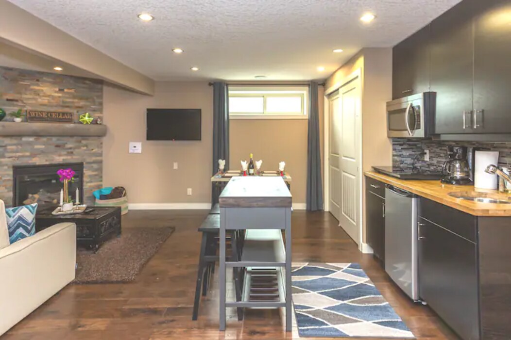 तुमचे घर घरापासून दूर आहे. नुकत्याच नूतनीकरण केलेल्या, आधुनिक वॉकआऊट बेसमेंट अपार्टमेंटमध्ये आराम करा आणि त्याचा आनंद घ्या. उज्ज्वल, प्रशस्त आणि अप्रतिम लोकेशनवर. कॅनमोरला 45 मिनिटे किंवा बॅन्फ नॅशनल पार्कला एक तास. कॅल्गरीला 25 मिनिटे. हे युनिट हायवे 1A च्या जवळ आहे आणि कोच्रेनच्या ऐतिहासिक डाउनटाउनमध्ये थेट ॲक्सेस देखील देते. - स्वतःहून चेक इन - आगमनापूर्वी व्यावसायिक स्वच्छता - कॉफी, चहा, ताजे टॉवेल्स आणि विनामूल्य पोशाख दिले जातात