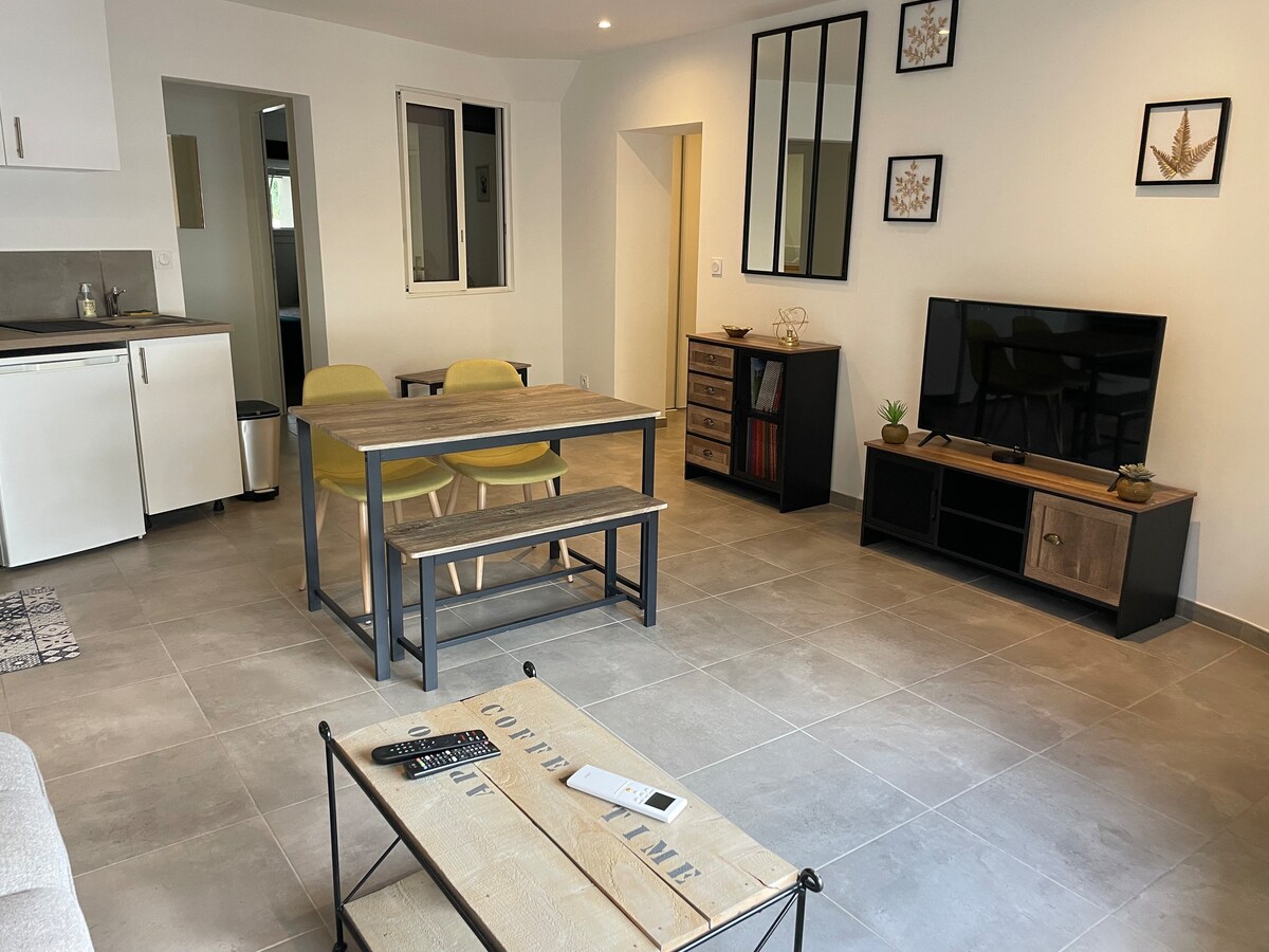 आम्ही नुकतेच नूतनीकरण केलेले T2 घर ऑफर करतो. आमच्या निवासस्थानाला जोडून, तुमच्याकडे स्वतंत्रपणे हे निवासस्थान असेल! गेटेड पार्किंगची जागा उपलब्ध आहे. उत्तम लोकेशन: - मोटरवे ॲक्सेसपासून 2 मिनिटांच्या अंतरावर - बीचपासून 20 मिनिटांच्या अंतरावर - तटबंदी असलेल्या Aigues - Mortes शहरापासून 20 मिनिटांच्या अंतरावर - निमेसपासून 15 मिनिटांच्या अंतरावर - माँटपेलियरपासून 20 मिनिटांच्या अंतरावर - स्पेनपासून 2 तास - सेवेनेसपासून 1 तास आम्ही तुम्हाला होस्ट करण्यास उत्सुक आहोत! P: टॉवेल्स आणि चादरी € 10: 1 सेट, € 15: 2 सेट्स केलेले नाहीत