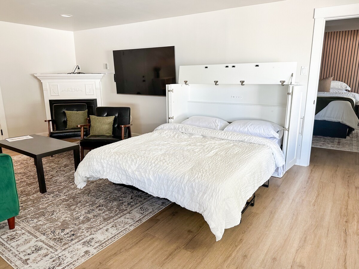 जास्तीत जास्त शांतता आणि आरामासाठी मिनिमलिस्ट, विचारशील डिझाईन. होस्ट करण्यासाठी नवीन आणि उद्देश तयार केलेला, तुमचा क्लीन सुईट सुंदर टेस्ट ऑफ ह्युमॅनिटी ट्रेलवर आहे. थेट तुमच्या सुईटमधून किंवा तुमच्या कव्हर केलेल्या बाल्कनीतून चालण्याचा, बाइकिंगचा किंवा नेत्रदीपक दृश्याचा आनंद घ्या. होस्ट्स अनेक दशकांपासून या प्रदेशात राहत आहेत आणि त्या प्रदेशाने ऑफर केलेल्या जवळपासच्या विविध आकर्षणे, ॲक्टिव्हिटीज आणि भोगवटा तुम्हाला मार्गदर्शन करू शकतात. डाउनटाउनपासून काही मिनिटांच्या अंतरावर आहे, परंतु निसर्गाच्या सानिध्यात असल्यासारखे वाटते!