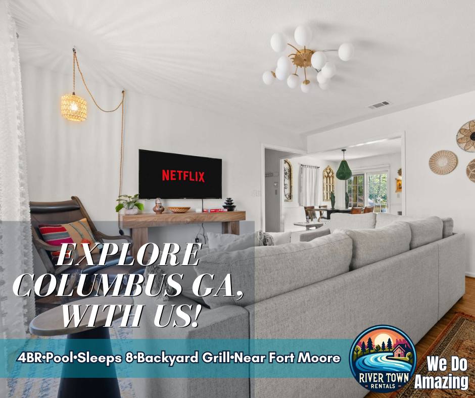 ✨ Welcome to your luxury stay with a private pool, 2 primary bedrooms, spacious living areas, game room and space for the whole family, up to 14 guest. Just minutes from Fort Benning and Columbus State University, it’s perfect for graduations, weddings, or summer vacations. This stylish home offers comfort, fun, and relaxation for groups of all sizes. Create lasting memories with your family and enjoy an stress-free getaway—book your escape today!