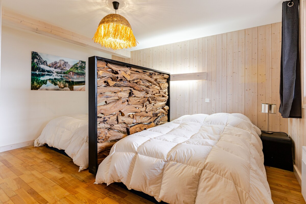 निसर्गरम्य दृश्यांचा बदल शोधत असताना, माँट ब्लांकच्या समोरील दृश्यासह हे प्रशस्त आणि उबदार शॅले एक जोडपे, मित्रमैत्रिणींचा समूह किंवा कुटुंबासाठी योग्य आहे. 8 लोकांना सहजपणे सामावून घेणे. पर्वतांच्या मध्यभागी रिचार्ज करा आणि अविस्मरणीय आठवणी तयार करा. तुम्ही स्की उतार, लेक बायोटॉप आणि कॉम्ब्लॉक्सच्या सुंदर गावाचा आनंद घ्याल. तुम्ही स्थानिक गॅस्ट्रोनॉमीचा देखील आनंद घ्याल. रॅकेट आणि टार्टिफलेट्स तुम्ही तुमच्या वास्तव्याची पूर्तता करण्याची वाट पाहत आहेत.