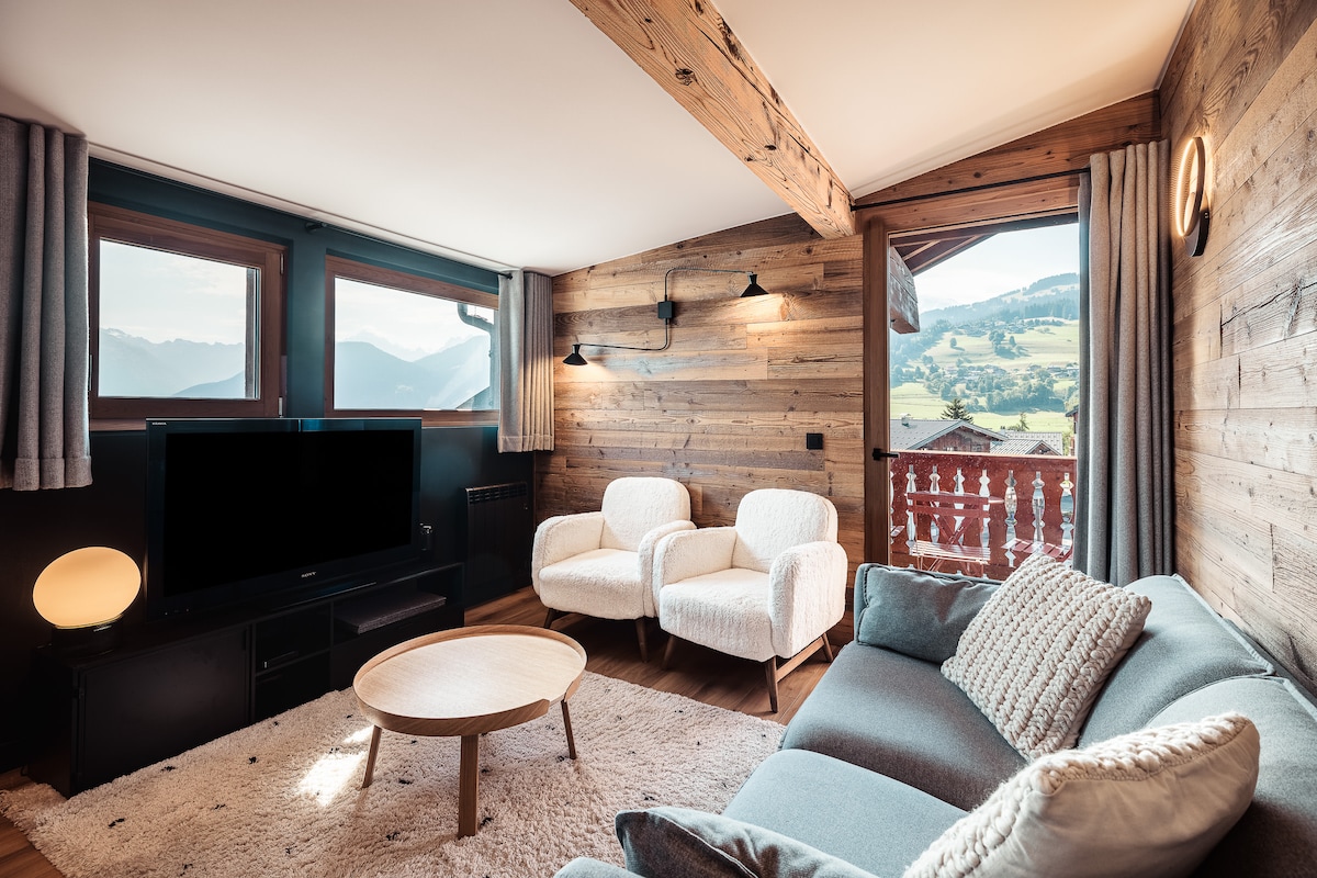 ले कोकन | माँट ब्लांक आणि व्हिलेज सेंटरचा व्ह्यू. कॉम्ब्लॉक्समधील 4 लोकांसाठी मोहक अपार्टमेंट, 51 मीटर ², 2 बेडरूम्स, बाल्कनी, पूर्णपणे सुसज्ज किचन, माँट ब्लांक आणि लेस फिझचे दृश्य. दुकानांमधून आणि स्की बसमधून Megève & Combloux पर्यंत दगडी थ्रो. लिननने प्रदान केलेले, स्की लॉकर, आरामदायक सजावट. तुमच्या माऊंटन सुट्ट्यांसाठी एक आदर्श कोकण!