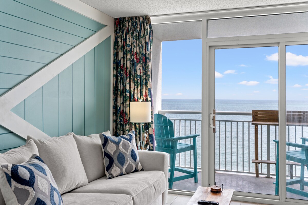 या वरच्या मजल्यावरील, महासागराच्या समोरच्या काँडोमध्ये तुमच्यासाठी आणि तुमच्या 8 पर्यंतच्या ग्रुपसाठी अविस्मरणीय वास्तव्याचा आनंद घ्या. तुम्ही तुमचा उबदार कॉफीचा कप किंवा कॉकटेल ताजेतवाने करत असताना लाटांचे ऐकत असताना समुद्राकडे पाहत बाल्कनीत बसा. कुटुंब किंवा मित्रांसह तुमच्या पुढील सुट्टीसाठी हा 3 बेडरूमचा काँडो योग्य जागा आहे. आमच्यासोबत तुमची पुढील बीच मेमरी तयार करा! तुमचे वास्तव्य अविस्मरणीय आणि लष्करी सवलती कसे बनवायचे याबद्दलच्या कल्पनांसाठी मला आजच मेसेज करा!