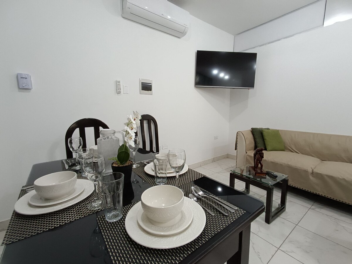 पुकलपाच्या मध्यभागी असलेल्या आमच्या आरामदायक मिनी अपार्टमेंटमध्ये तुमचे स्वागत आहे! हे पुकलपा स्टेडियमपासून एक ब्लॉक अंतरावर असलेल्या शॉपिंग एरियामध्ये स्थित आहे. हे घर तिसऱ्या मजल्यावर एक प्रीमियर आहे आणि पार्किंग फक्त मोटरसायकलसाठी आहे; त्यात आराम शोधत असलेल्यांसाठी आणि शहरात त्यांच्या वास्तव्यादरम्यान घरी असल्यासारखे वाटण्यासाठी तुम्हाला आवश्यक असलेल्या सर्व गोष्टी आहेत. तुमची होस्टेस म्हणून, मी कोणत्याही प्रश्नांच्या शोधात असेन.
