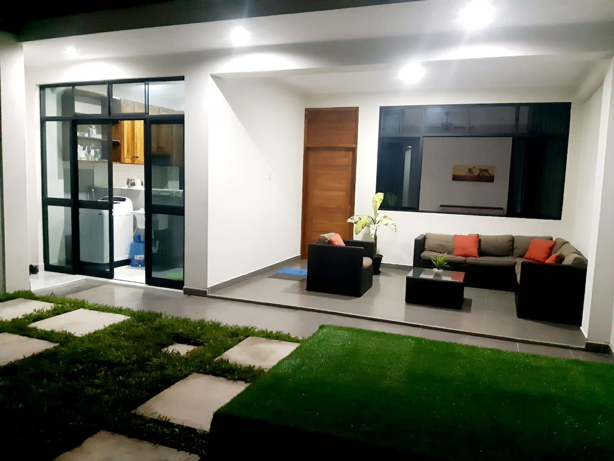 हे घर शहराच्या शहरी भागात, विमानतळापासून 7 मिनिटांच्या अंतरावर आणि शहरापासून 5 मिनिटांच्या अंतरावर आहे. घर खाजगी, प्रशस्त, एक छान टेरेस, एक मोठा पॅटिओ आहे जो गॅरेज, सुसज्ज किचन, 55" टीव्ही असलेली लिव्हिंग रूम, डायनिंग रूम, दोन बेडरूम्स, एक पूर्ण बाथरूम आणि गेस्ट्ससाठी दुसरा, सुसज्ज लाँड्री, सर्व भागांमध्ये चांगला नैसर्गिक प्रकाश म्हणून देखील वापरला जाऊ शकतो. यात सर्व मूलभूत सुविधा आहेत, तसेच AC, वायफाय, Netflix, DIRECTV, YouTube. मार्केट्स आणि दुकानांच्या जवळ.