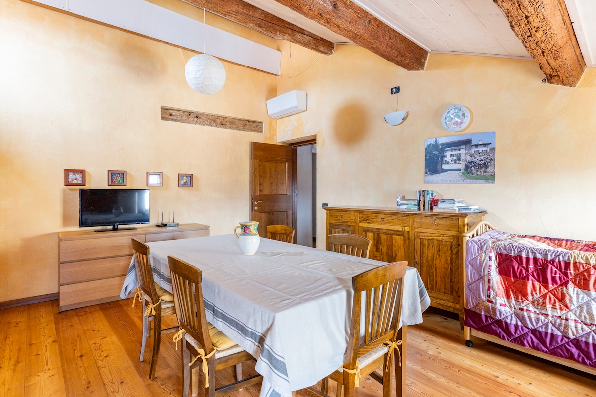 आमच्या घराशेजारी असलेल्या जुन्या कॉटेजमध्ये आमचे कुटुंब तुमचे आनंदाने स्वागत करेल. येथे तुम्ही व्हेरोना आणि लेक गार्डापासून अगदी थोड्या अंतरावर असलेल्या शांततेचा आनंद घेऊ शकता जे वालपोलिसेलाच्या द्राक्षवेलींमध्ये विलीन झाले आहे. "ला कॅसेटा" 2 स्तरांमध्ये पसरलेले आहे. लिव्हिंग एरिया, किचन आणि लहान बाथरूमसह प्रवेश. पहिल्या मजल्यावर एक मोठी डबल बेडरूम, एक वॉर्डरोब आणि एक बाथरूम आहे. प्रॉपर्टीमध्ये डबल सोफा बेड, डिशवॉशर, वॉशिंग मशीन आणि उपग्रह टीव्ही आहे. 023077 - LOC -0052