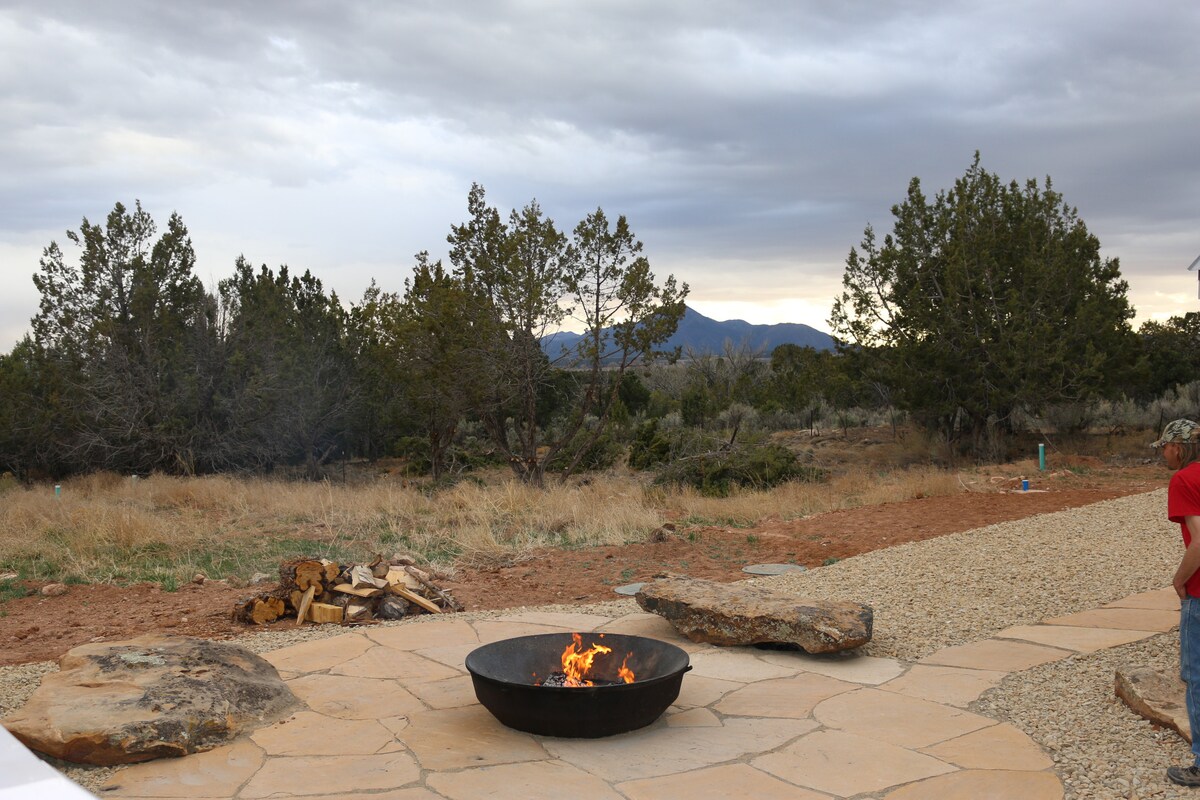 नाईटईगल नेस्टमधील तुमच्या डेकवरून दररोज सकाळी मेसा व्हर्डे नॅशनल पार्कची अद्भुत ठिकाणे पहा. पार्कचे प्रवेशद्वार 5 मिनिटांच्या अंतरावर आहे. आम्ही ग्रामीण 2000 एकर उपविभागात 11 लाकडी एकरवर आहोत. तुम्हाला मोठा 1904 क्लॉ फूट टब तसेच तुमच्या वाईल्ड वेस्ट ॲडव्हेंचर्सच्या सर्व स्नायूंना भिजवण्यासाठी शॉवरमध्ये फिरणे आवडेल. मग तुमच्या पाश्चात्य शैलीतील किंग साईझ बेडचा आनंद घ्या किंवा क्वीनच्या आकाराच्या उशीच्या वरच्या बेडवरील लॉफ्टमध्ये आराम करा. आमच्या अकरा एकरच्या आसपास मोकळ्या मनाने जा.