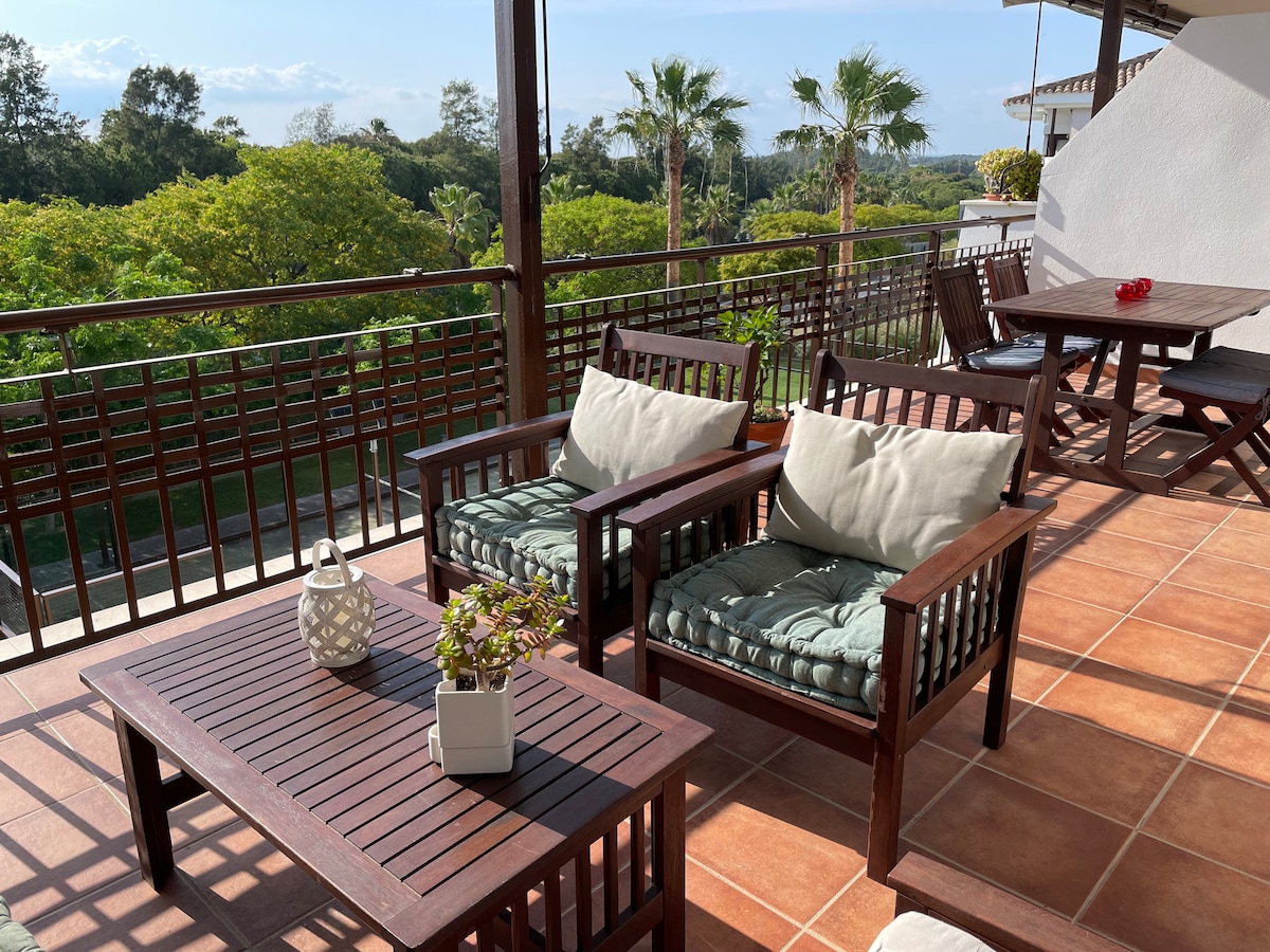 तुम्हाला तुमच्या मित्रमैत्रिणी आणि कुटुंबासह आराम करायचा आहे का? तुमच्या प्रियकराबरोबर अनोखे क्षण शेअर करण्यासाठी हे अपार्टमेंट उत्तम आहे. 2 स्विमिंग पूल्स (एक प्रौढांसाठी आणि एक मुलांसाठी), एक लहान मुलांचे खेळाचे मैदान, 2 पॅडल कोर्ट्स आणि एक बार्बेक्यू, अपार्टमेंट तुम्हाला आवश्यक असलेले सर्व आराम देते. पोर्तुगालसह दक्षिण - स्पॅनिश सीमेवर वसलेले हे अपार्टमेंट फारो विमानतळापासून कारने 40 मिनिटांच्या अंतरावर आणि सेव्हिला विमानतळापासून 1.2 तास अंतरावर आहे. कृपया लक्षात घ्या की स्विमिंग पूल्स ऑक्टोबर ते एप्रिल या कालावधीत बंद असतात. उघडण्याच्या वेळा बदलू शकतात.